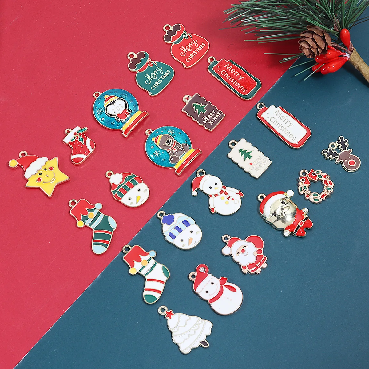 10/20pcs Christmas Charms Cute Cartoon Alloy Enamel Pendants For DIY Jewelry Making Necklace Pendant Phone Key Chain Accessories