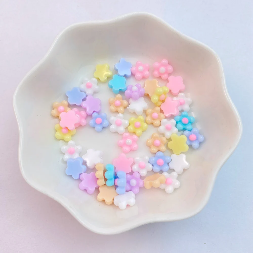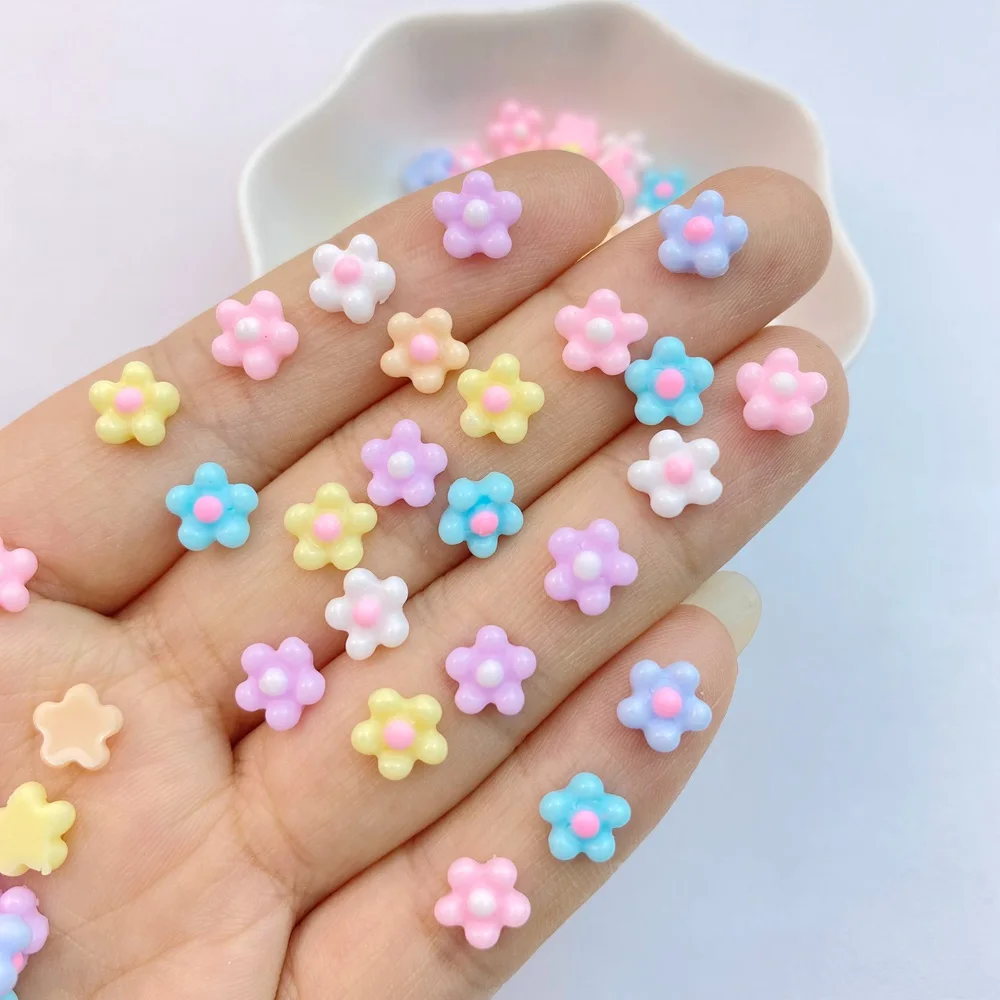 100Pcs New Cute Resin 7mm Mini Eggflower Series Flat Back Parts Embellishments For Hair Bows Accessories