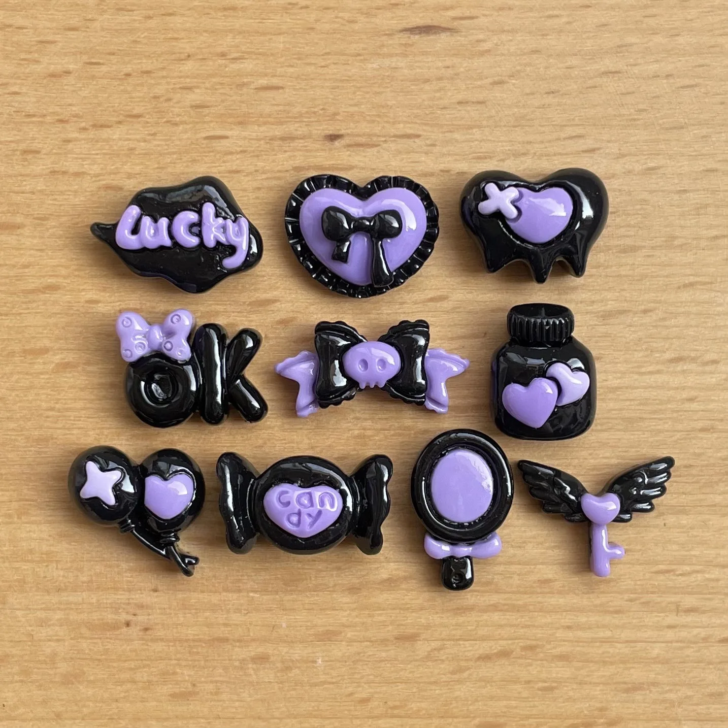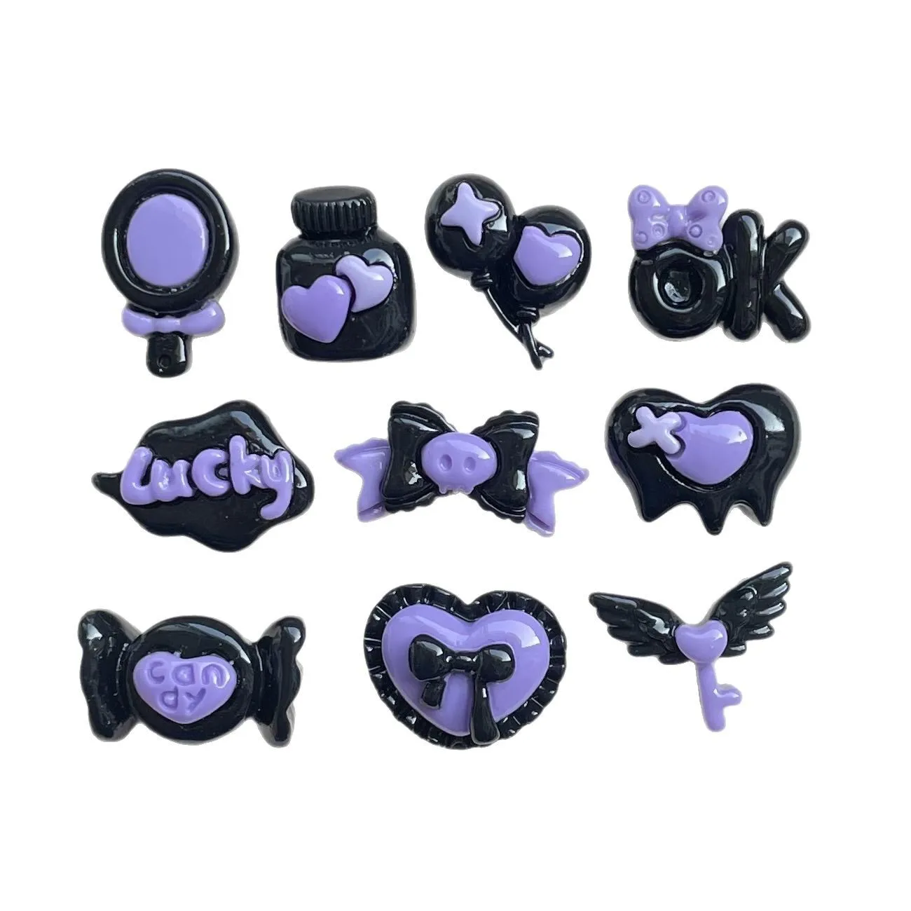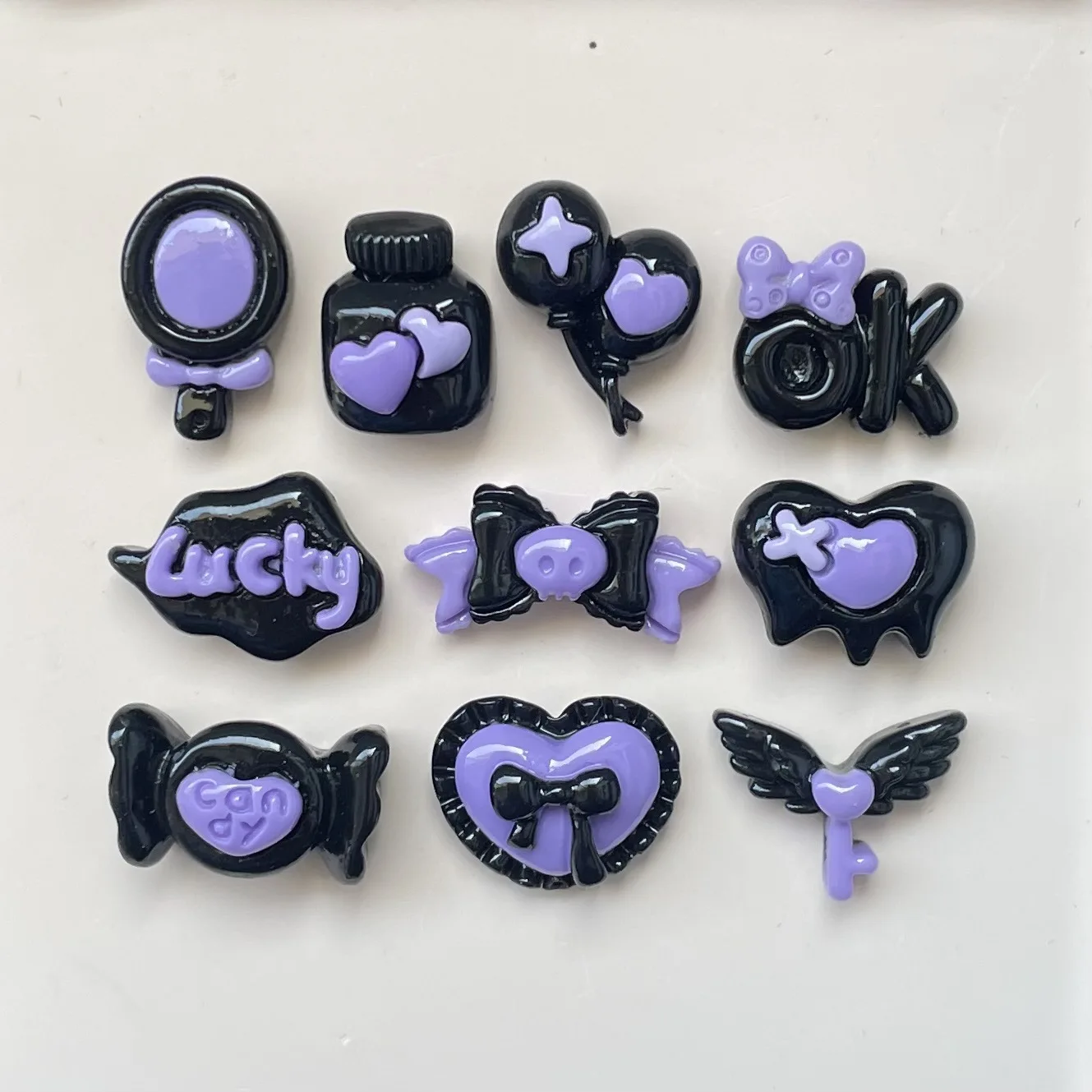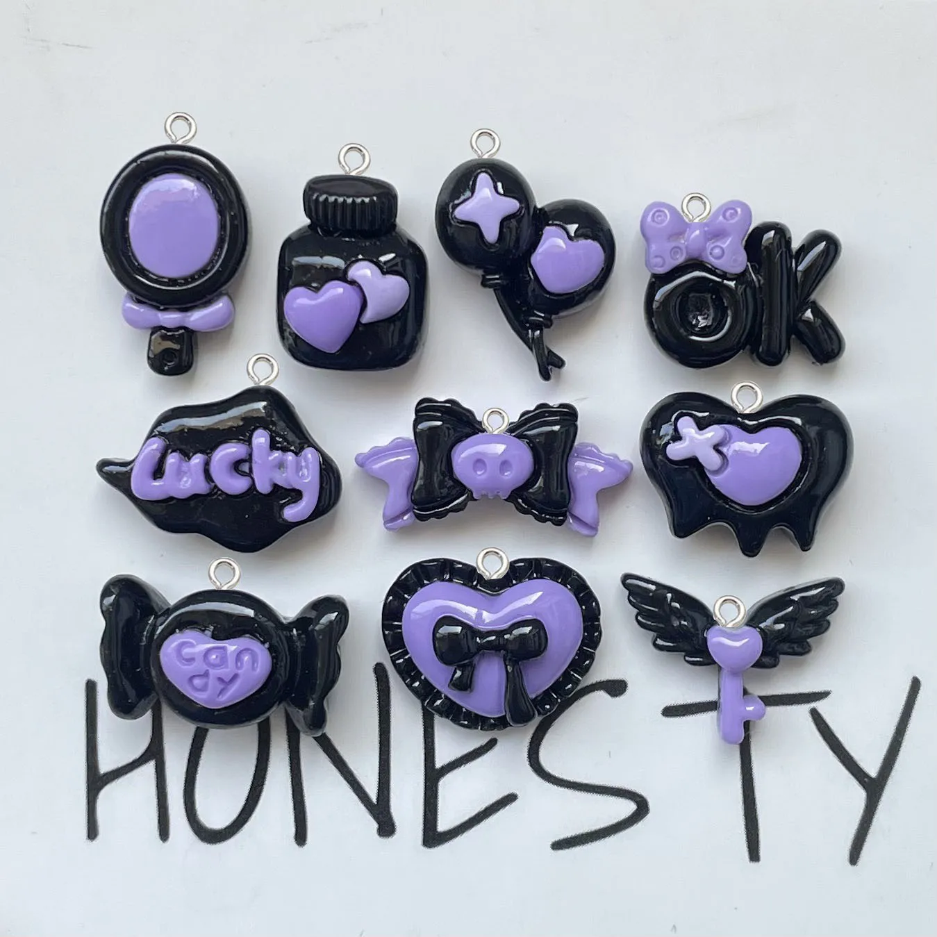 10pcs Black purple bow heart balloon resin pendant diy Handmade Dark series phone case decorations making for Keychain earrings