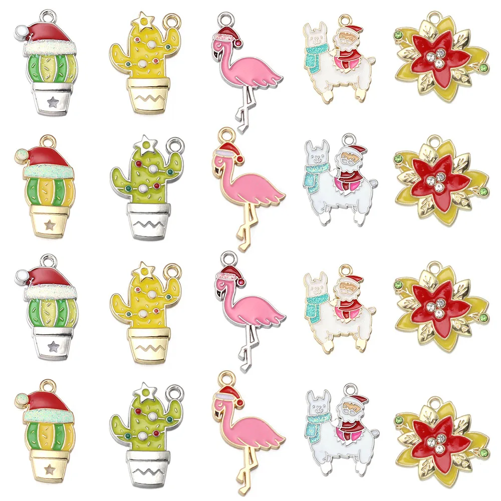 10pcs Christmas Enamel Charms Cute Alloy Drop Oil Animals Plant Pendants For DIY Jewelry Making Necklace Earrings Accessories