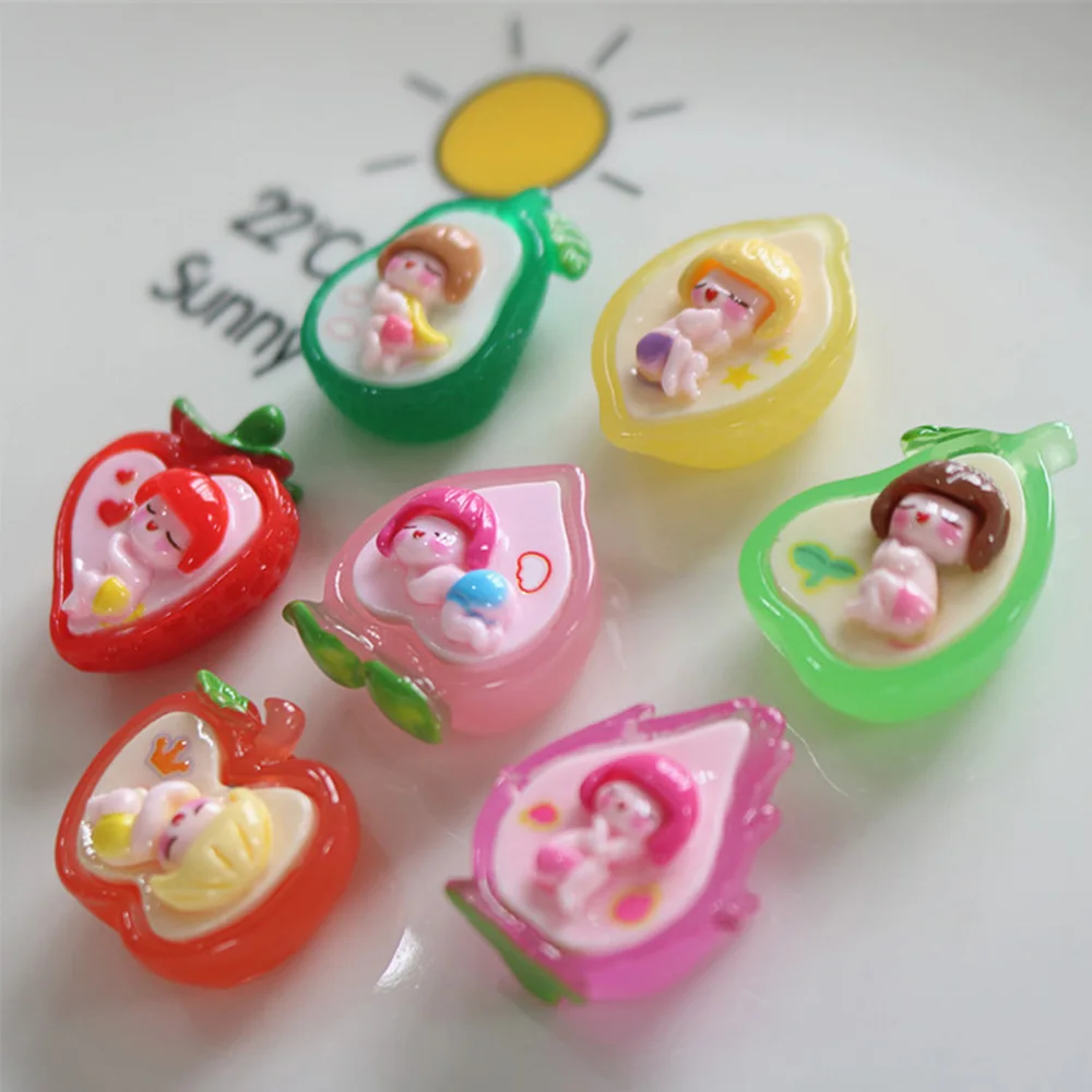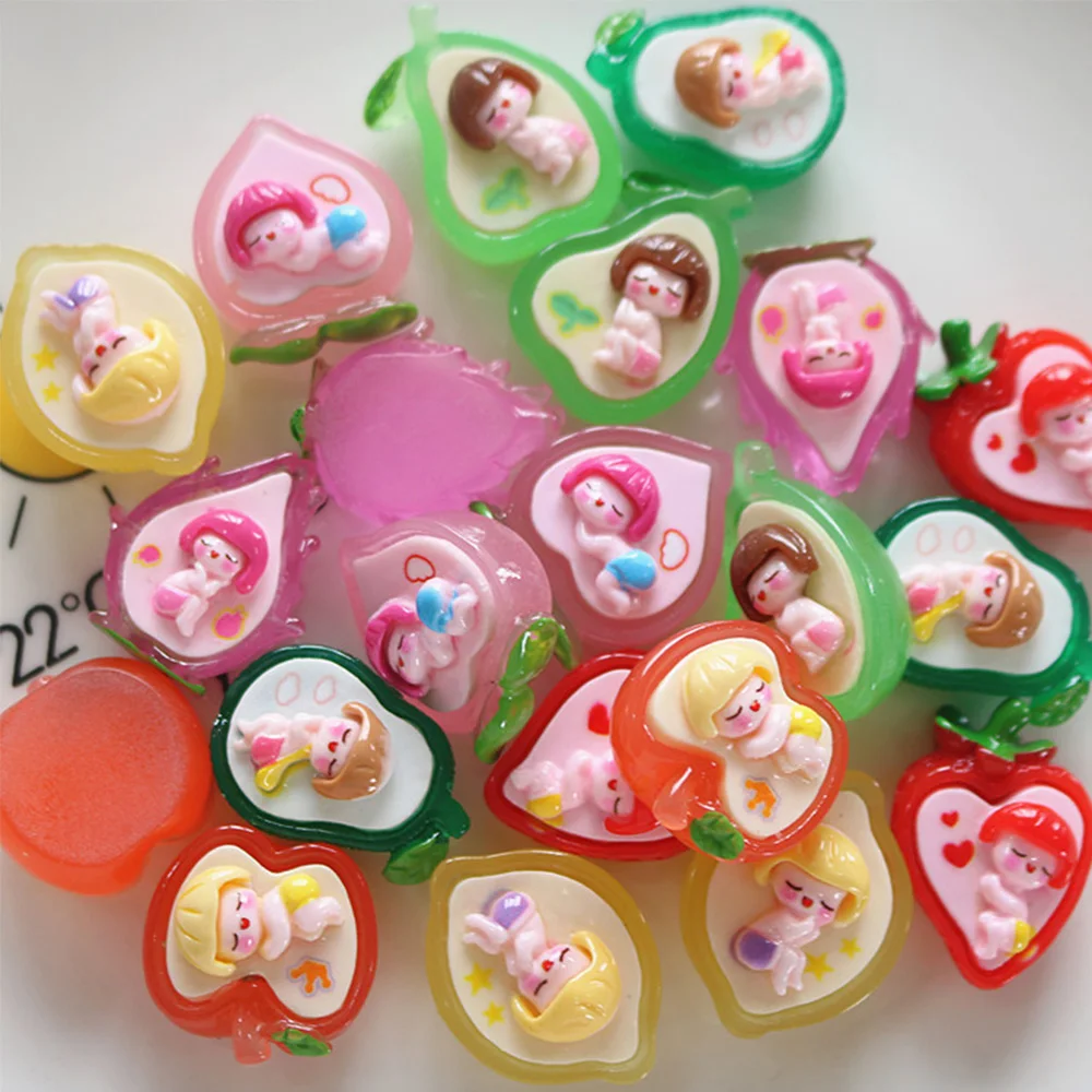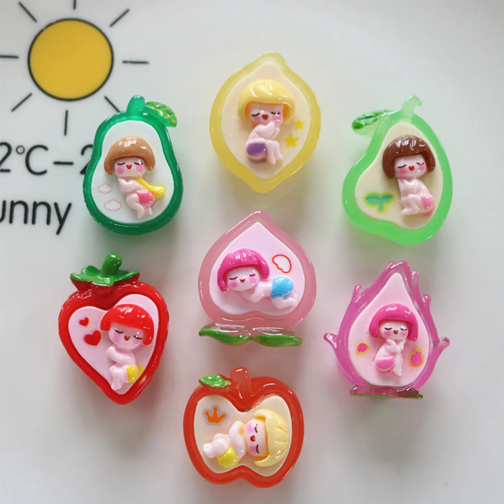 10PCS Clear Cartoon Fruit Girl Resin Flat Back Cabochons For Hairpin Scrapbooking DIY Jewelry Craft Decoration Accessories