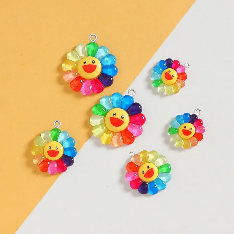 10pcs Colour Resin small pendant Smiling sunflower Charm DIY Flower Jewelry Making Accessories for Keychain mobile phone pendant