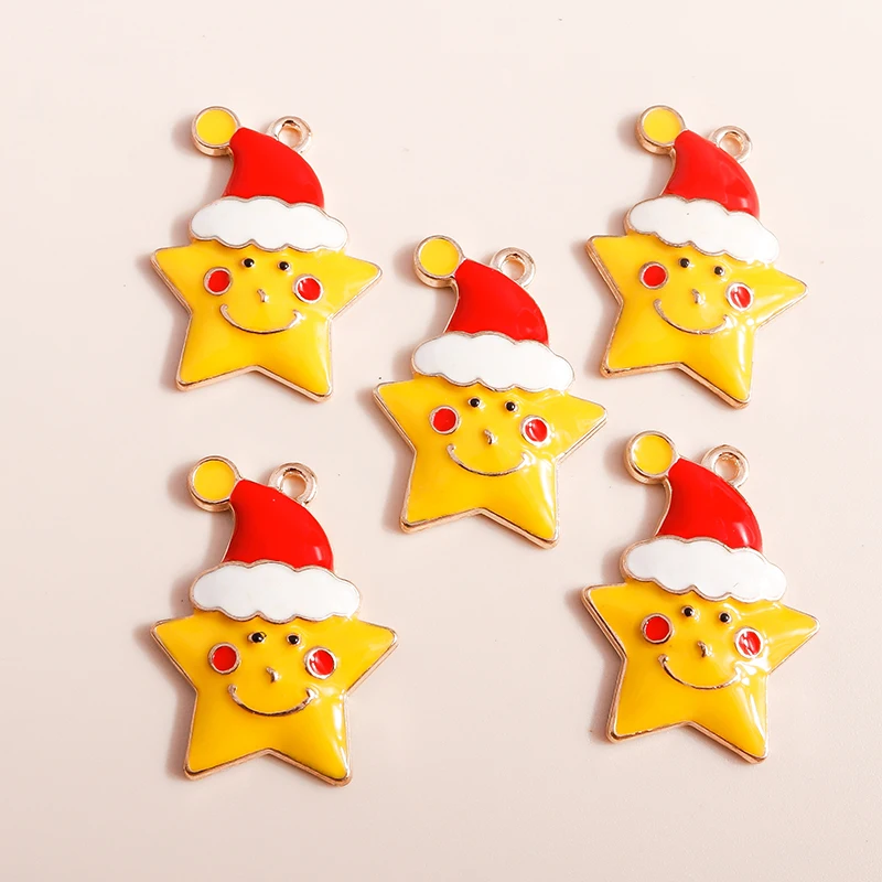 10pcs Mix Enamel Christmas Charms Noel Star Hats Santa Claus Pendants for Diy Jewelry Making Necklace Earring Making Accessories