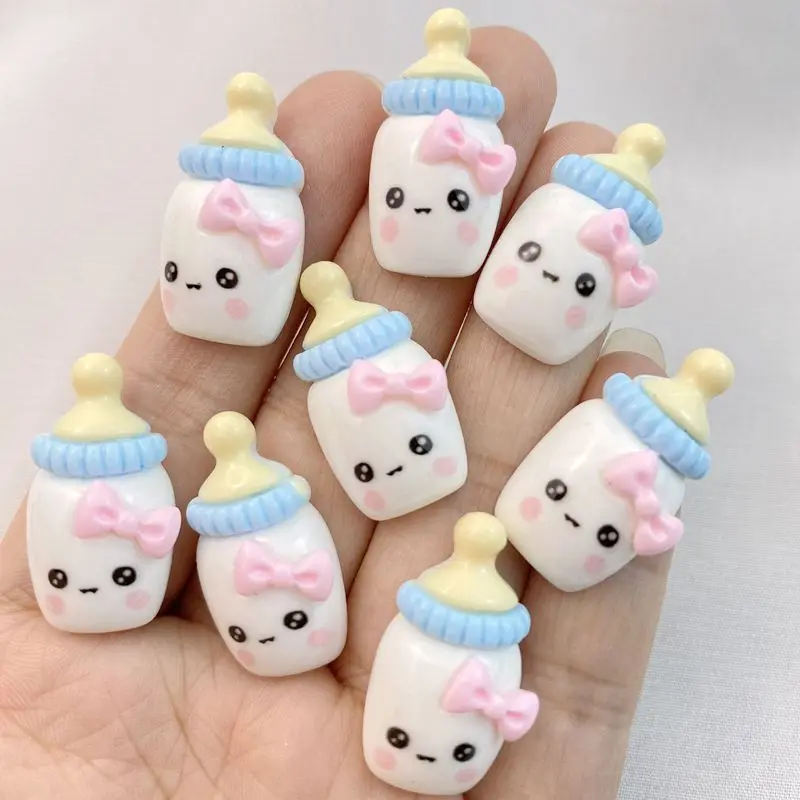 10Pcs New Cute Resin Cartoon Milk Bottle Series Flat Back Scrapbooking DIY Jewelry Craft Decoration