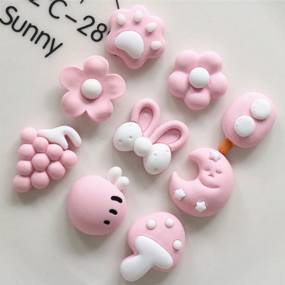 10PCS Pink Plant Series Flat Back Resin Cabochons For Hairpin Scrapbooking DIY Jewelry Craft Decoration Accessories