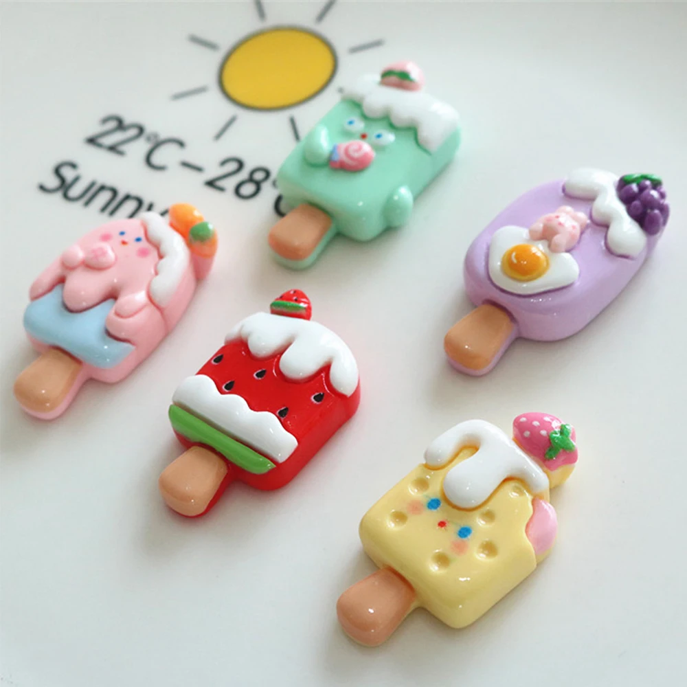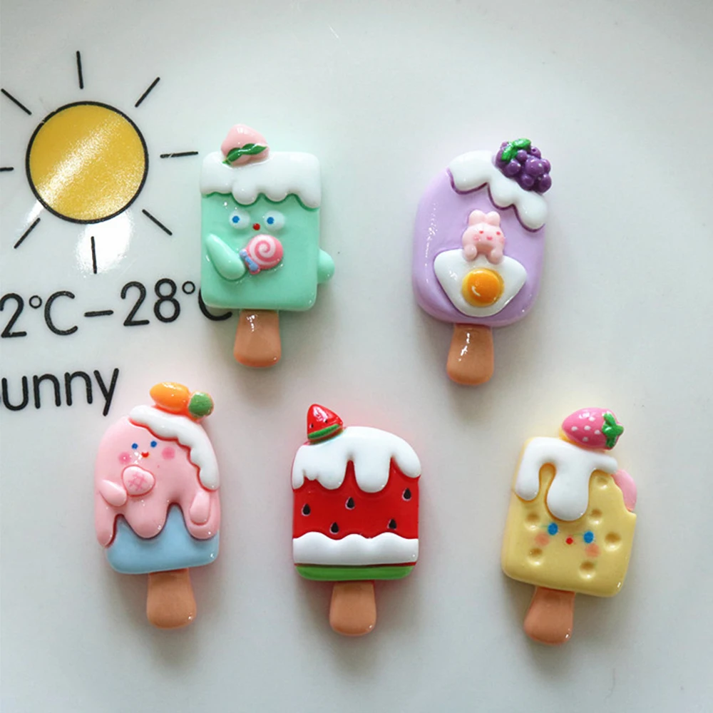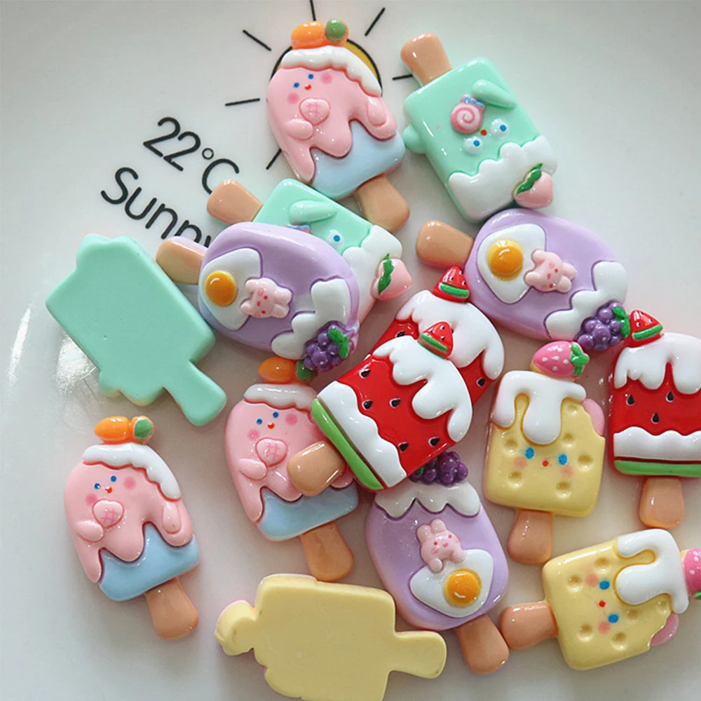 10PCS Shiny Fruit Popsicle Series Resin Flat Back Cabochons For Hairpin Scrapbooking DIY Jewelry Craft Decoration Accessories
