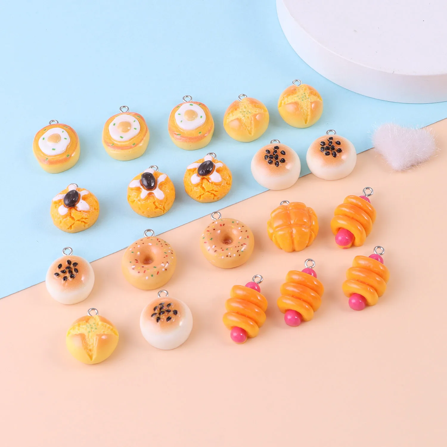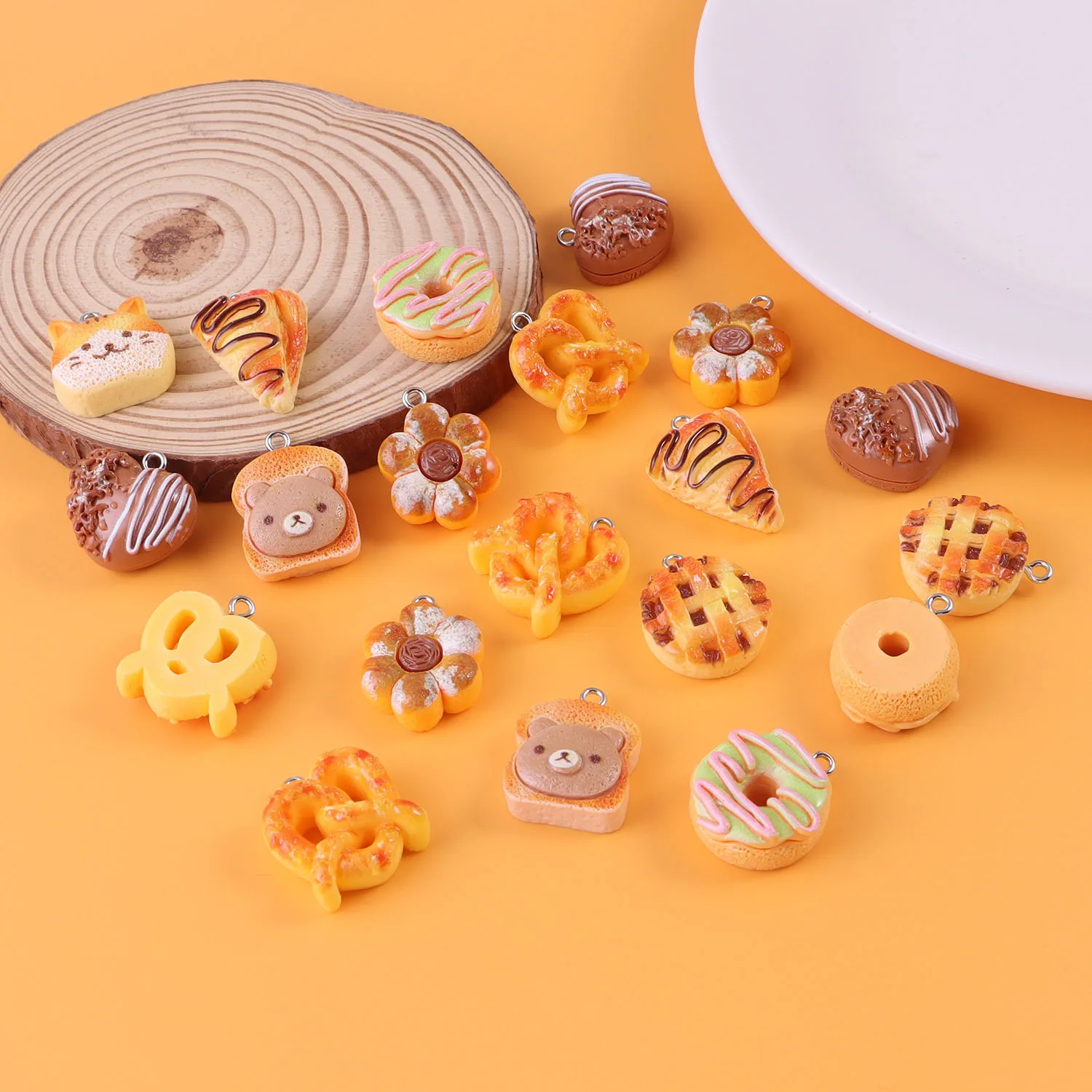 10Pcs Simulation Food Bread Toast Donuts Pendant Charms DIY Baking Charms Jewelry Making Necklace Bead Earring Key Chanis