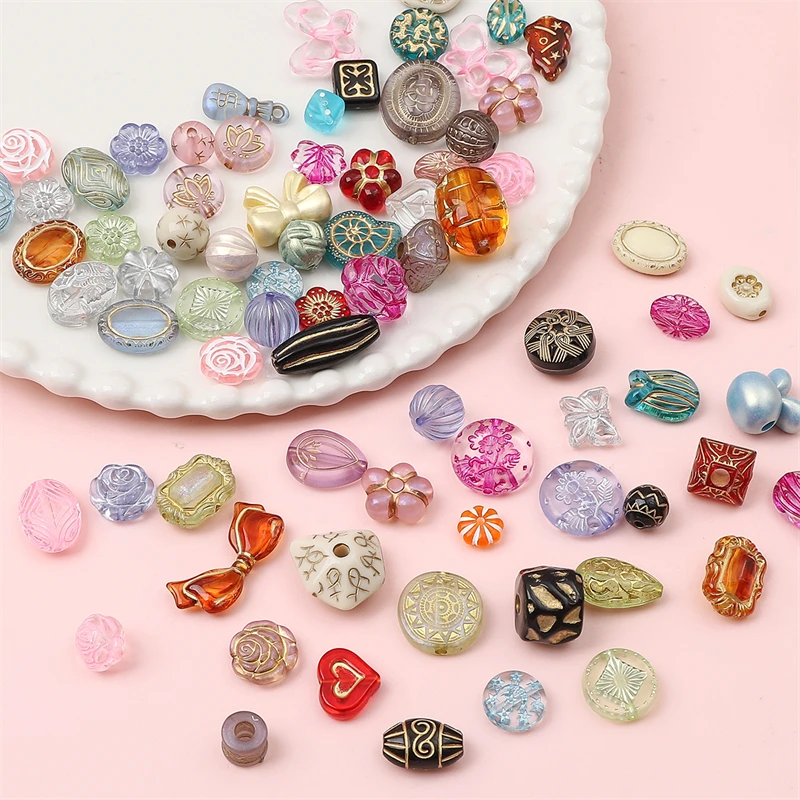 20g/lot DIY Acrylic Spacer Beads Rose Blossoms Bowknot Star Heart Shapes Bead for Jewelry Making Bracelets Necklaces Accessories