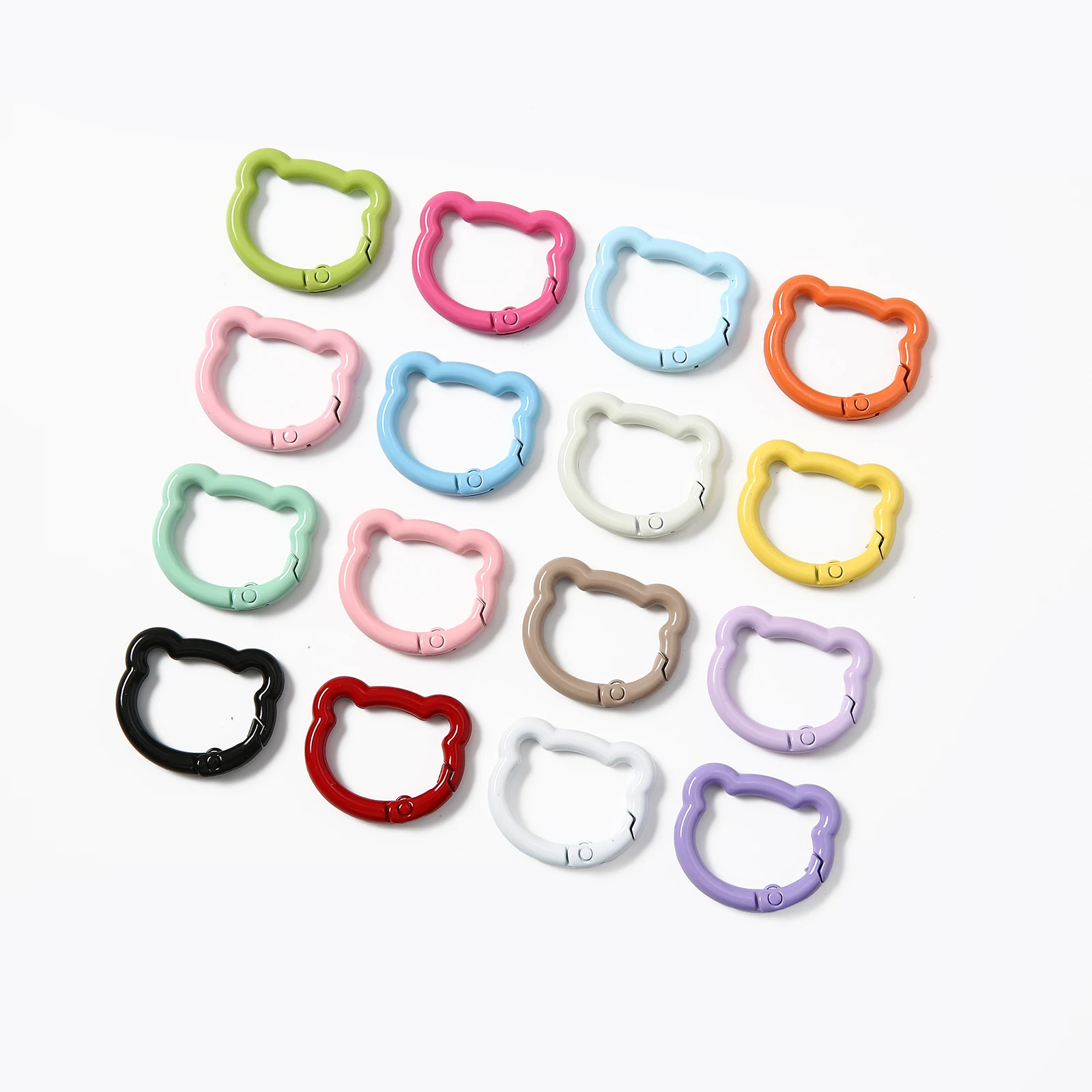 5/10/20/50 pcs Baking Paint Pop Color Spring Buckle Open Ring Small Bear Key Chain DIY Accessories Alloy Connection Ring