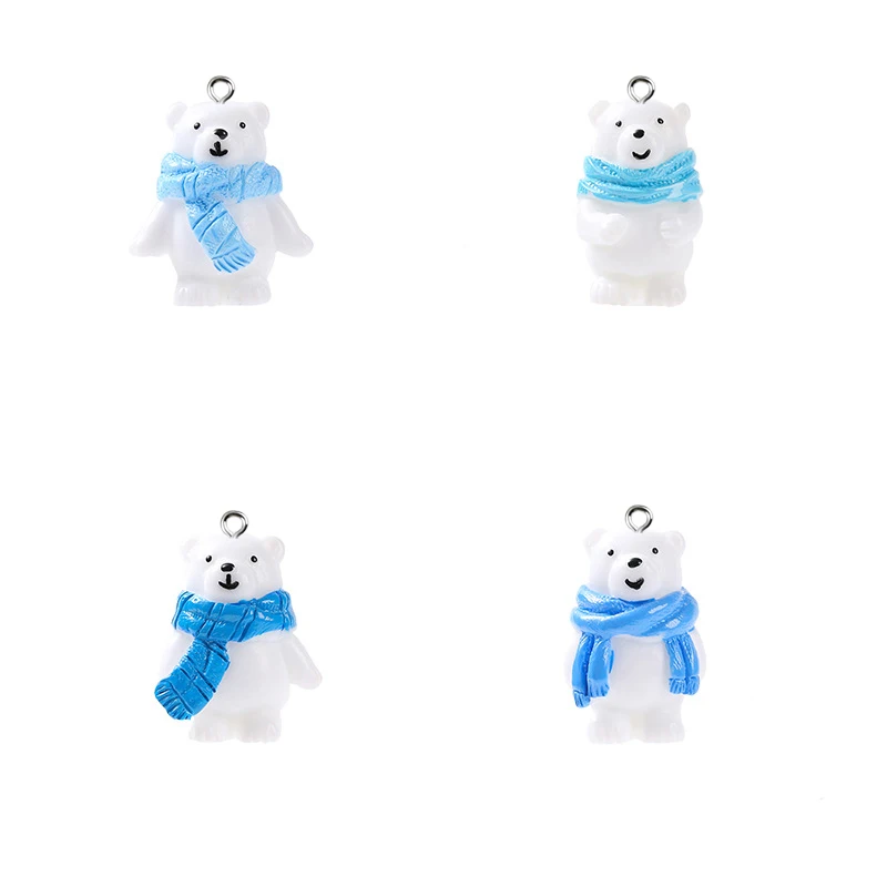 8pcs Cute Scarf Polar Bear Pendants Animal Charms DIY Phone Chains Keychain Earring Accessory for Jewelry Making Finding