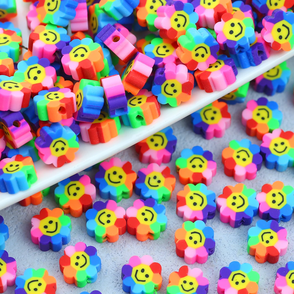 9mm Colorful Sunflowers Polymer clay Smile Spacer Loose Beads for Jewelry Making DIY Bracelets Earrings Phone Chains Accessories