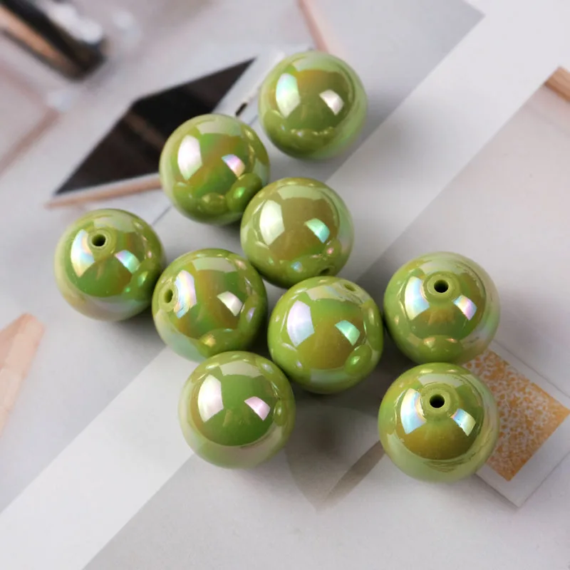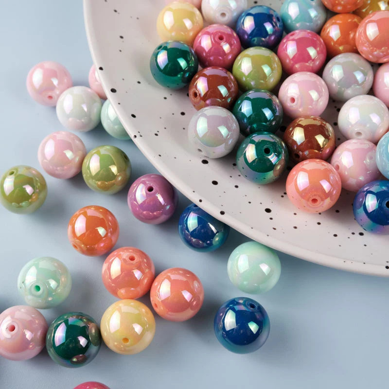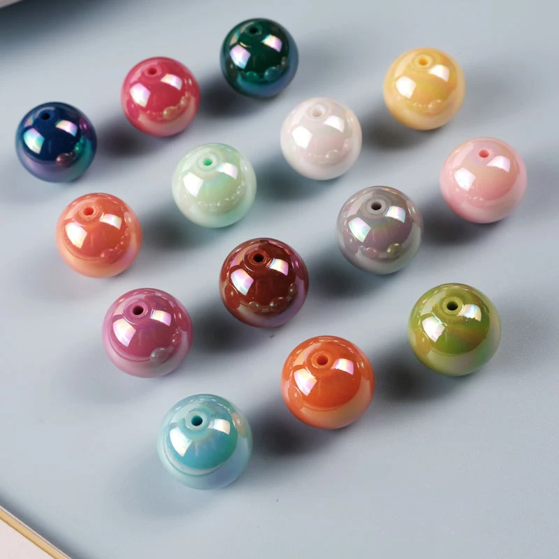CH94 10pcs Colorful Straight Hole Round Bead 16mm Seven Color Plated with AB Loose Bead Acrylic DIY Jewelry Handmade Accessories