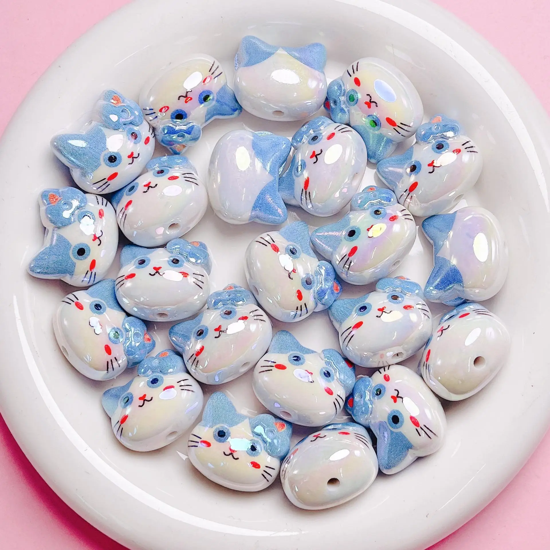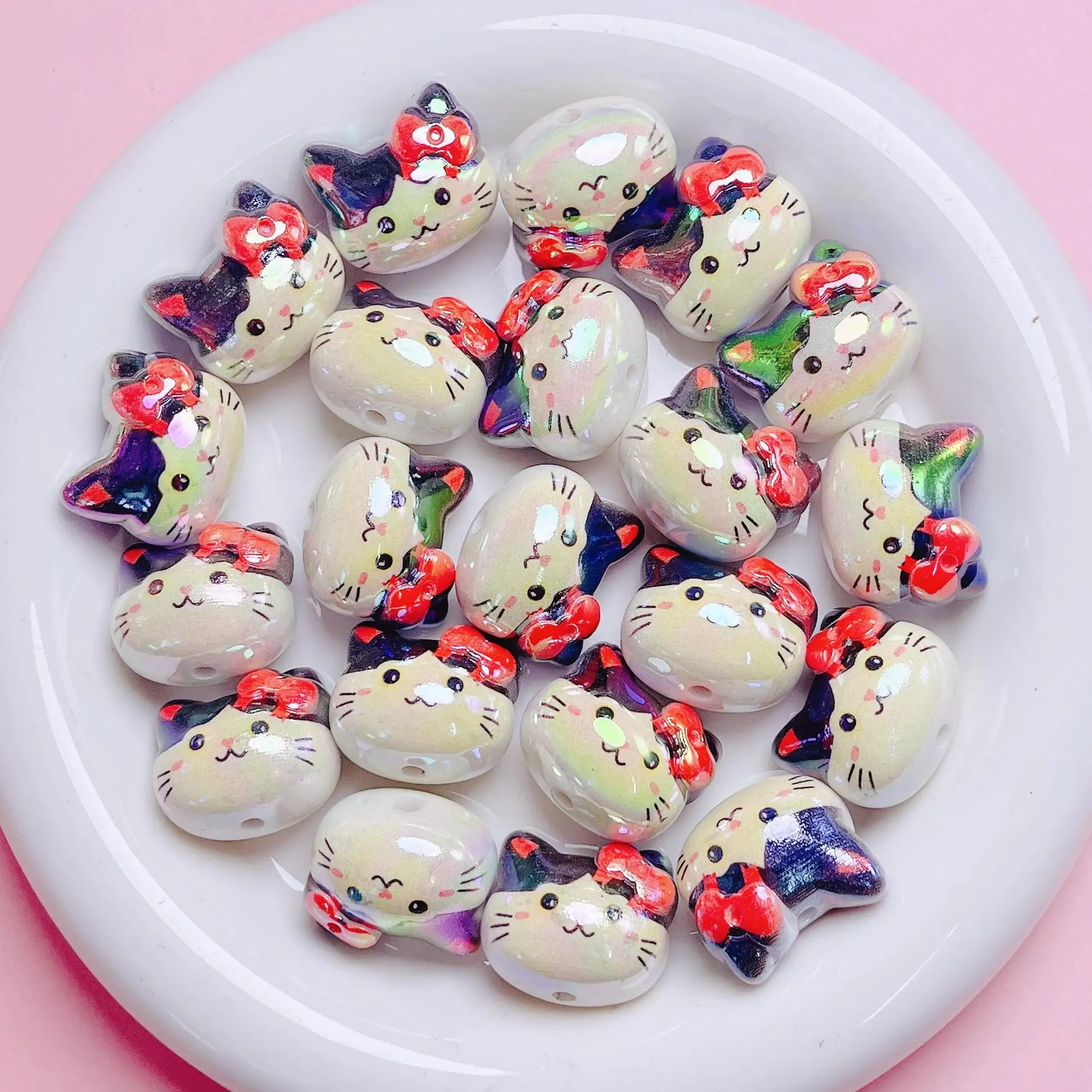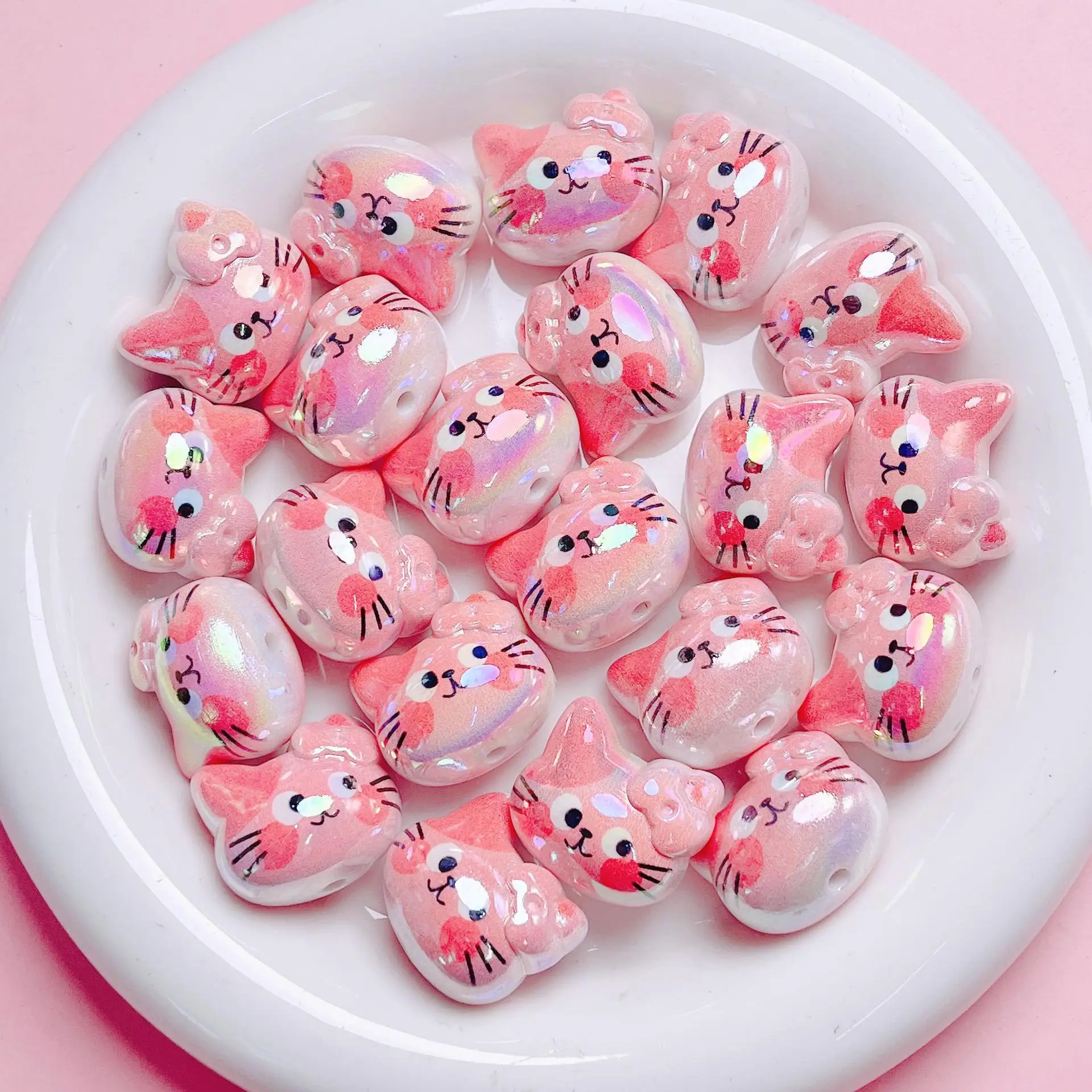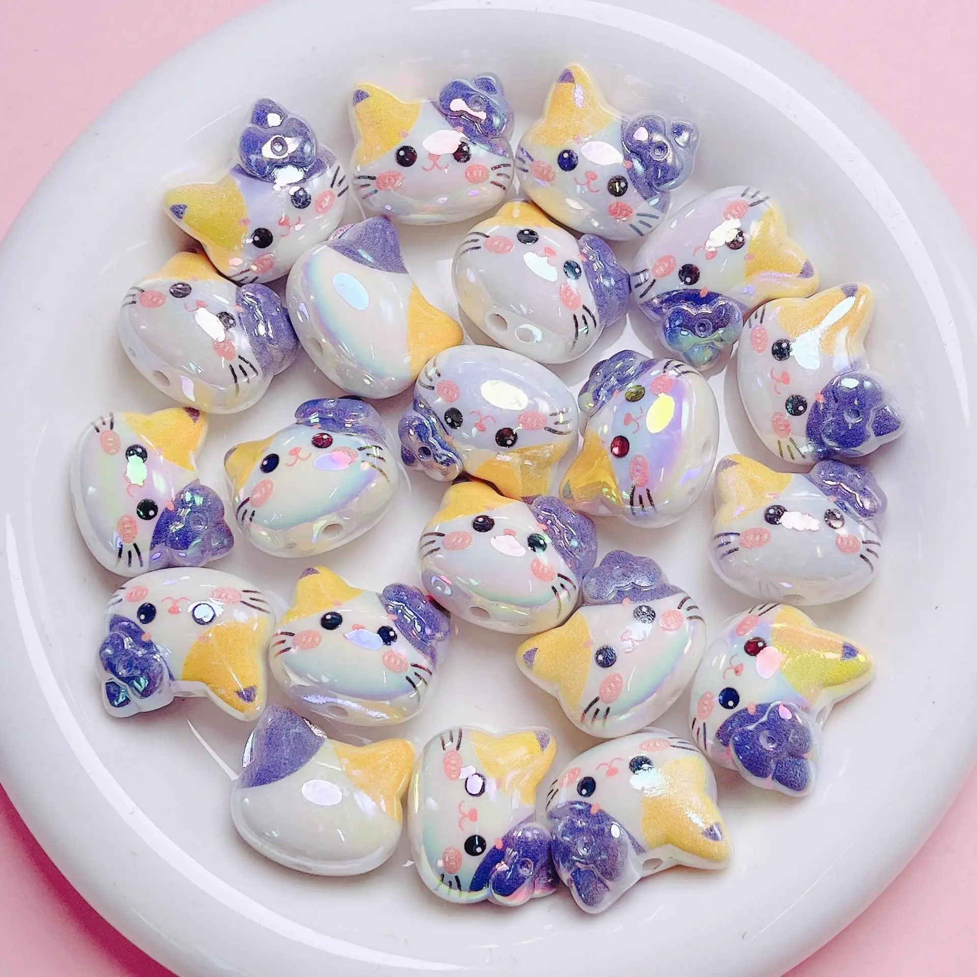 DW57 1pcs UV Color Cartoon Cat Acrylic Straight Hole Loose Beads DIY Mobile Phone Chain Keychain Material Jewelry Accessories