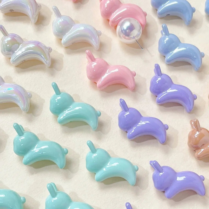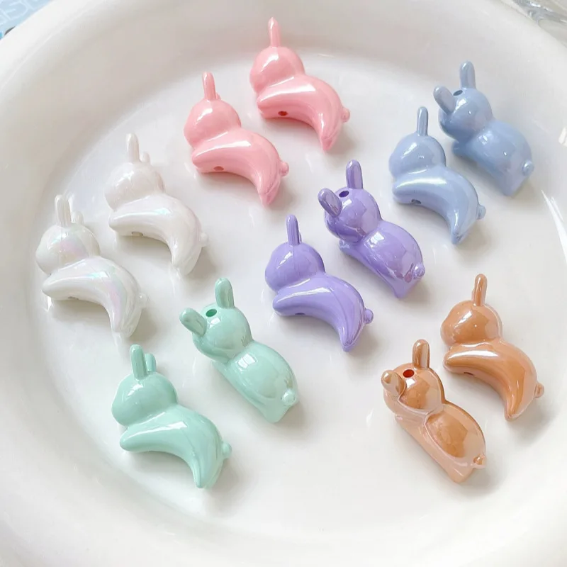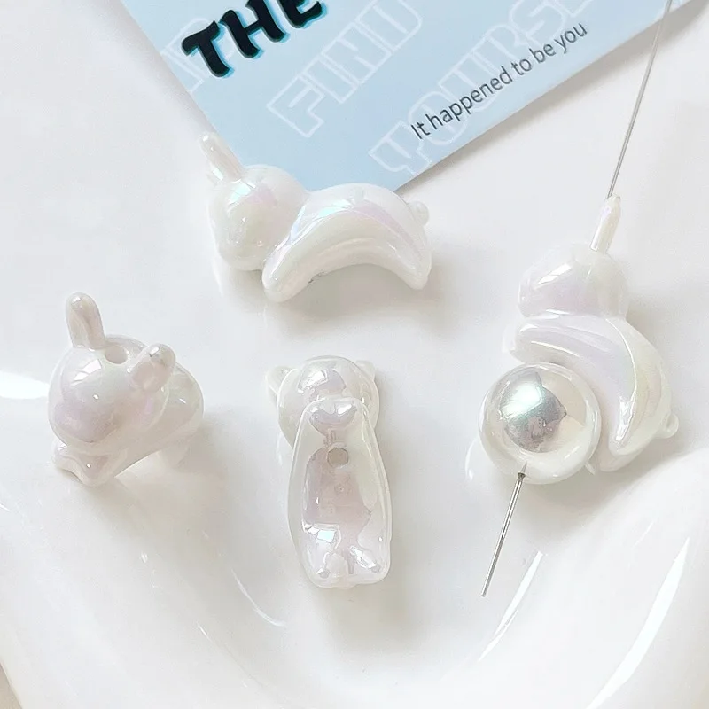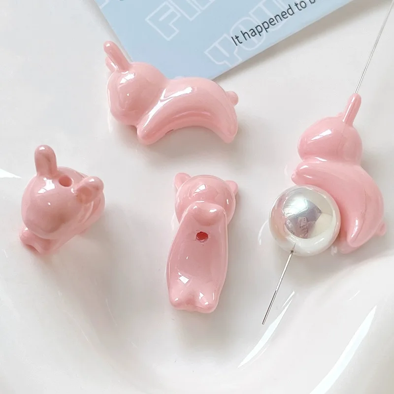 DW64 5Pcs Cream Like Cute Bunny Straight Hole Beads DIY Makes Fashionable Charm Jewelry Necklaces Bracelets Accessory Materials