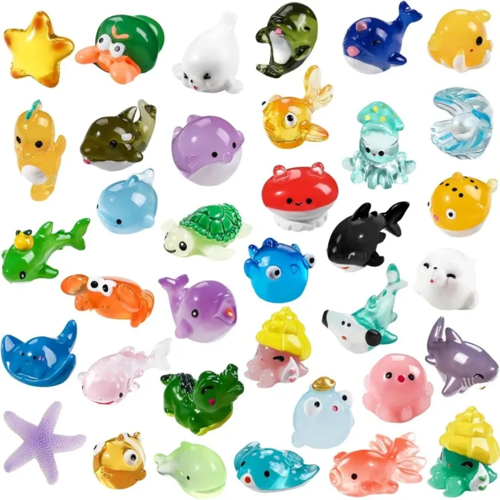 Mini Ocean Resin Animals Tiny Sea Animals Figurines Marine Miniature Decorations for DIY Fish Tank Potted Micro Garden Landscap