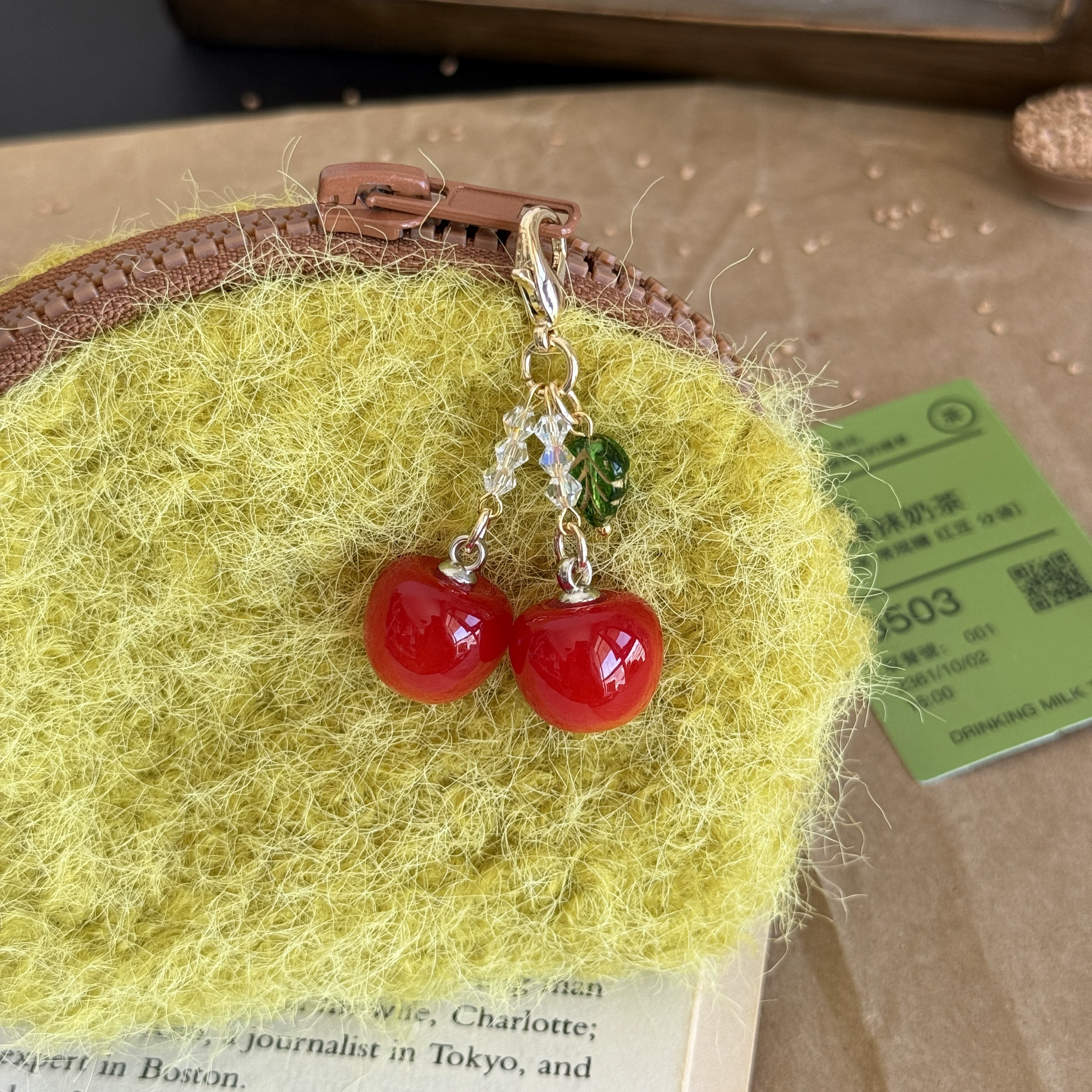 Original handmade sweet cherry cherry flip bag zipper buckle women’s bag pendant mobile phone chain hand ledger pendant