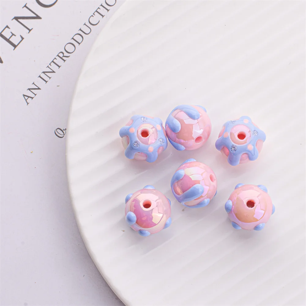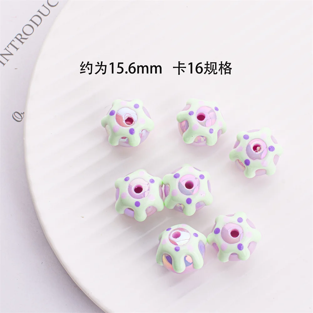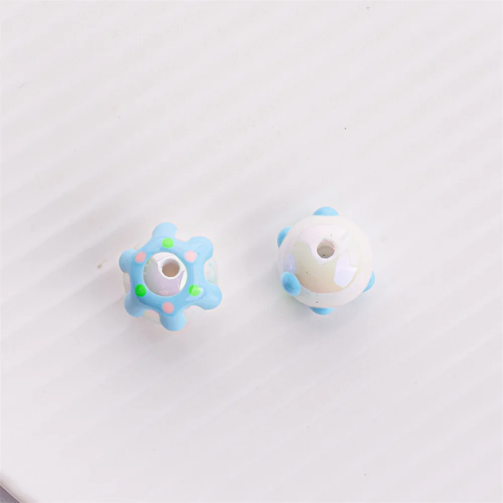 SW18 16mm Cute hHand-painted Illusion Flower Colored Round Bead Handmade Beaded Mobile Phone Chain Bracelet Materials