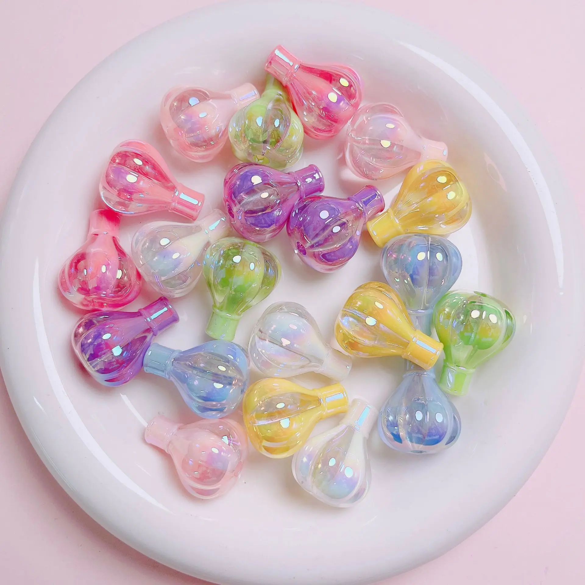 UV plated two-color small hot air balloon straight hole loose bead DIY mobile phone chain decoration keychain accessories