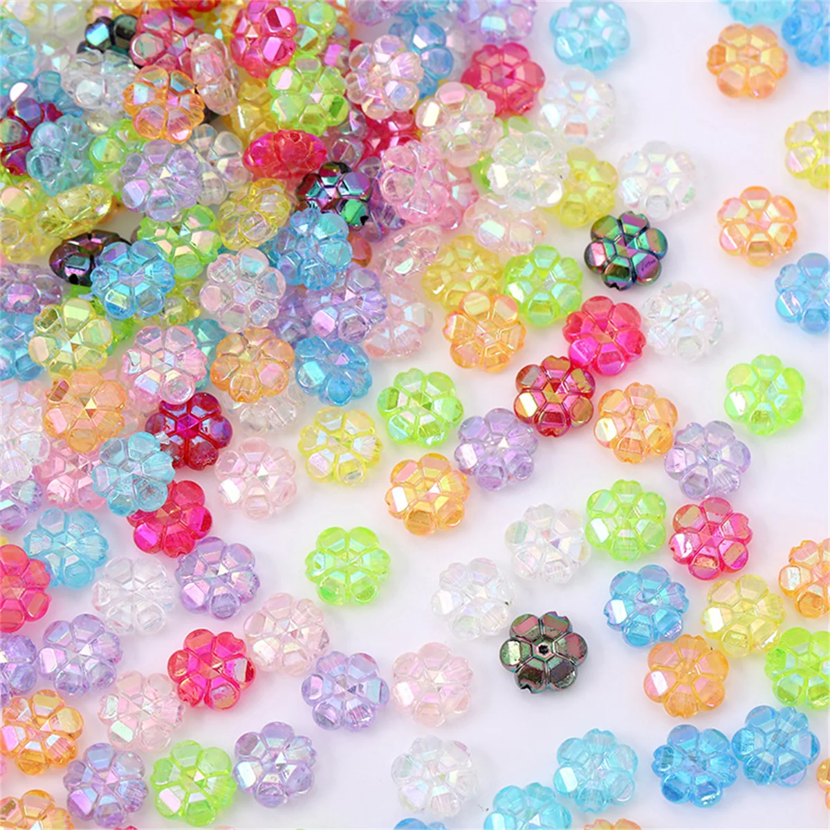 ZW10 50pcs 10mm Colorful Flower Acrylic Beads Mixed Loose Spacer Beads Jewelry Making DIY Bracelet Necklace Wholesale Gift
