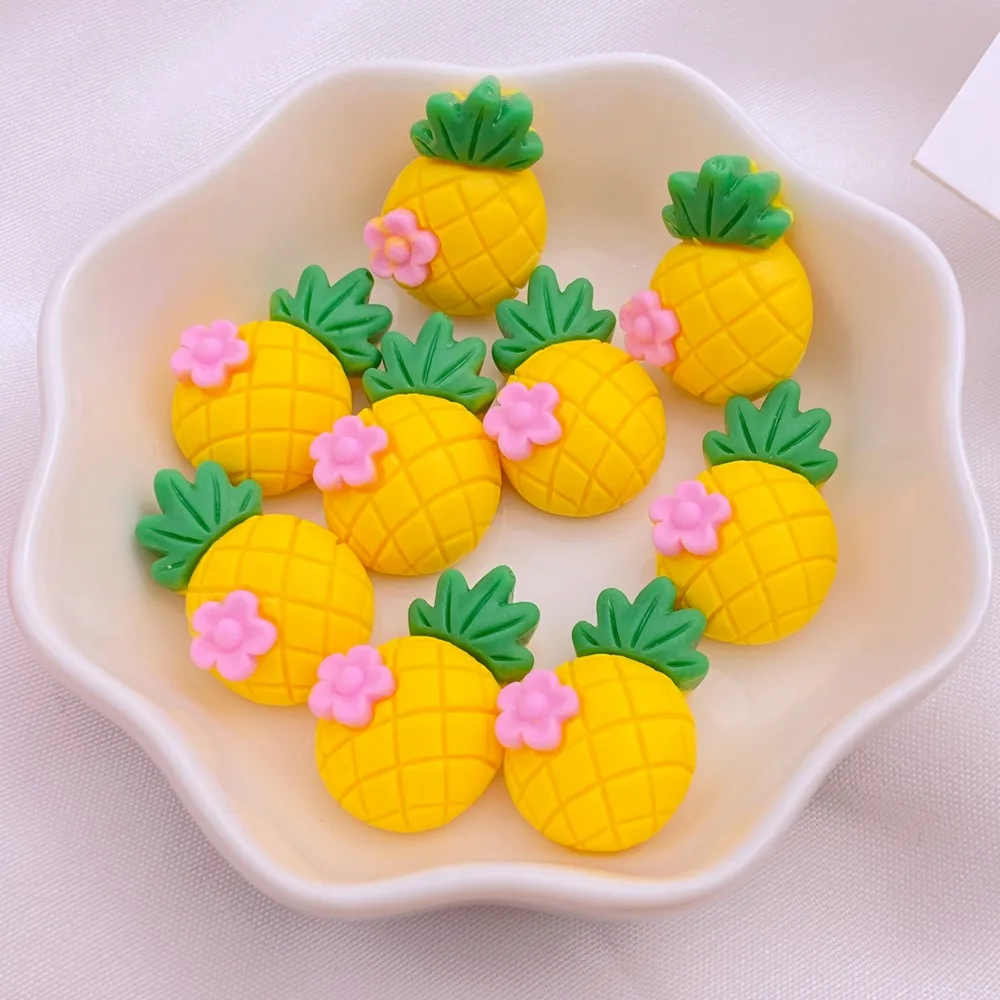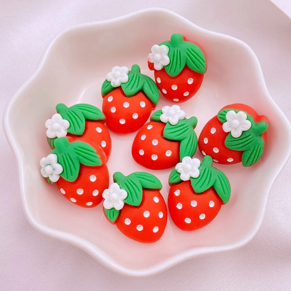 10Pcs New Cute Resin Cartoon Strawberry, Cherry, Radish, Pineapple Series Flat Back Manicure Parts Embellishments For Hair Bows