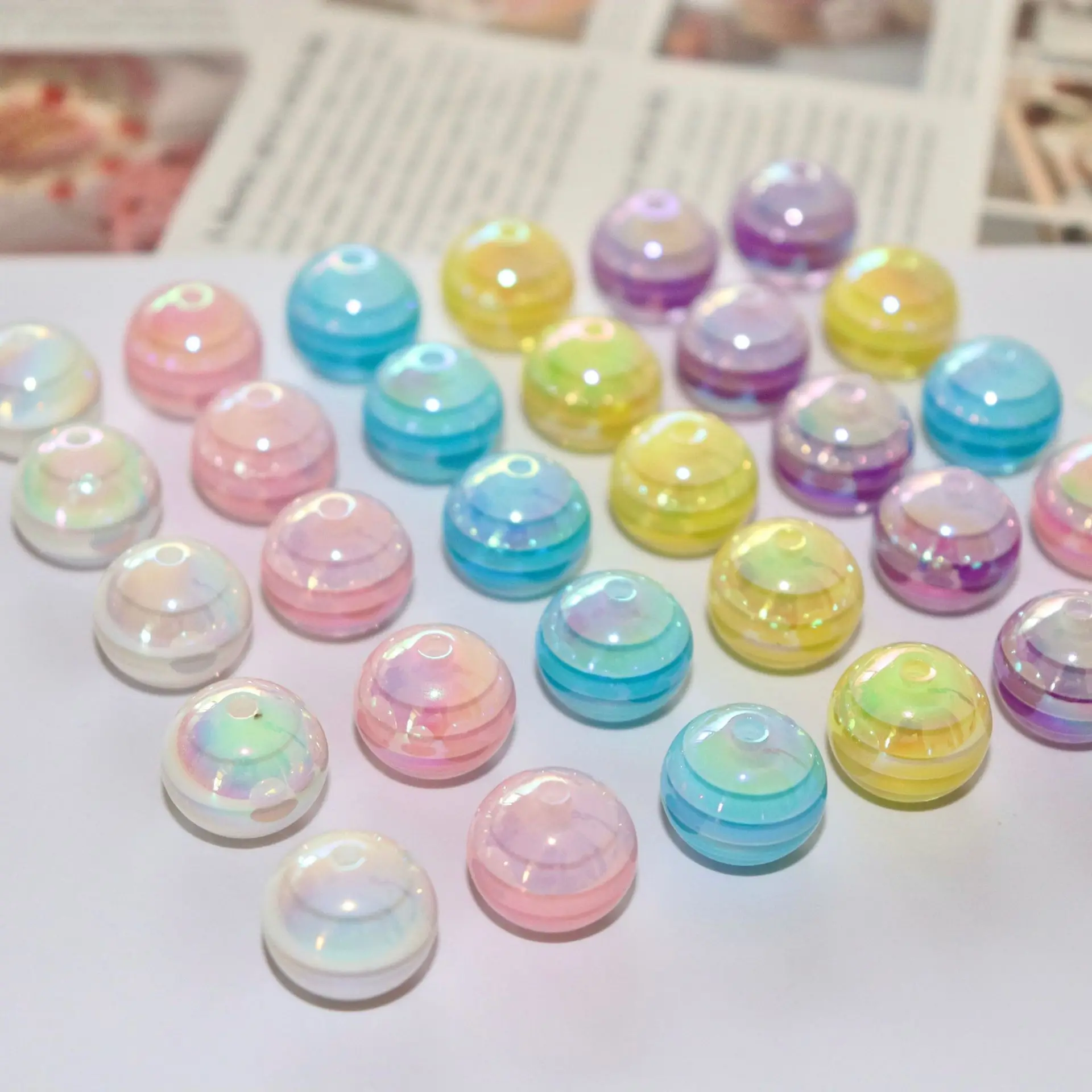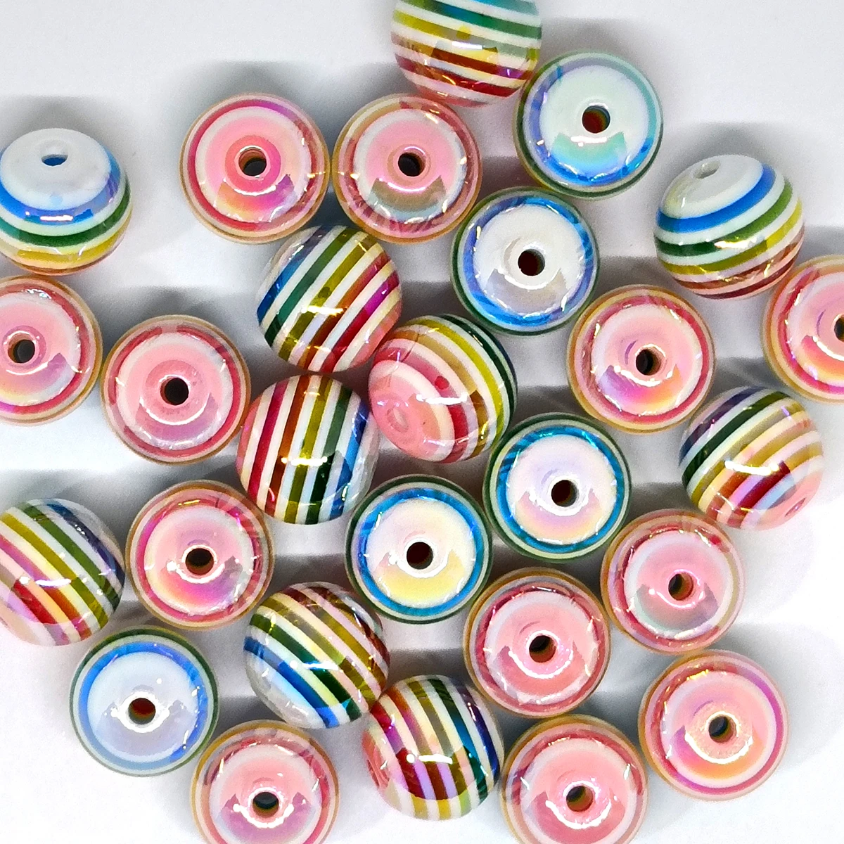 10pcs Resin rainbow gradient striped 16mm bead string for DIY bracelet Necklace keychain jewelry making accessory