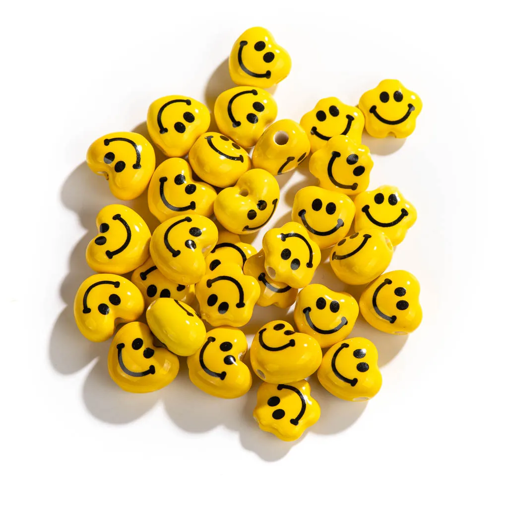 17#10pcs Yellow Smile Face Heart Star Shape Ceramic Beads Porcelain Pottery Punk Rock Special Jewelry Part #XN291