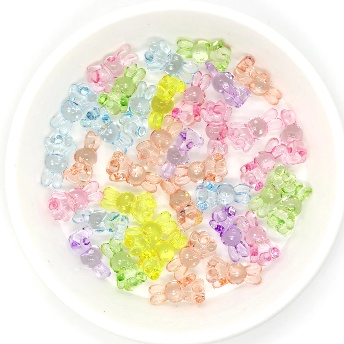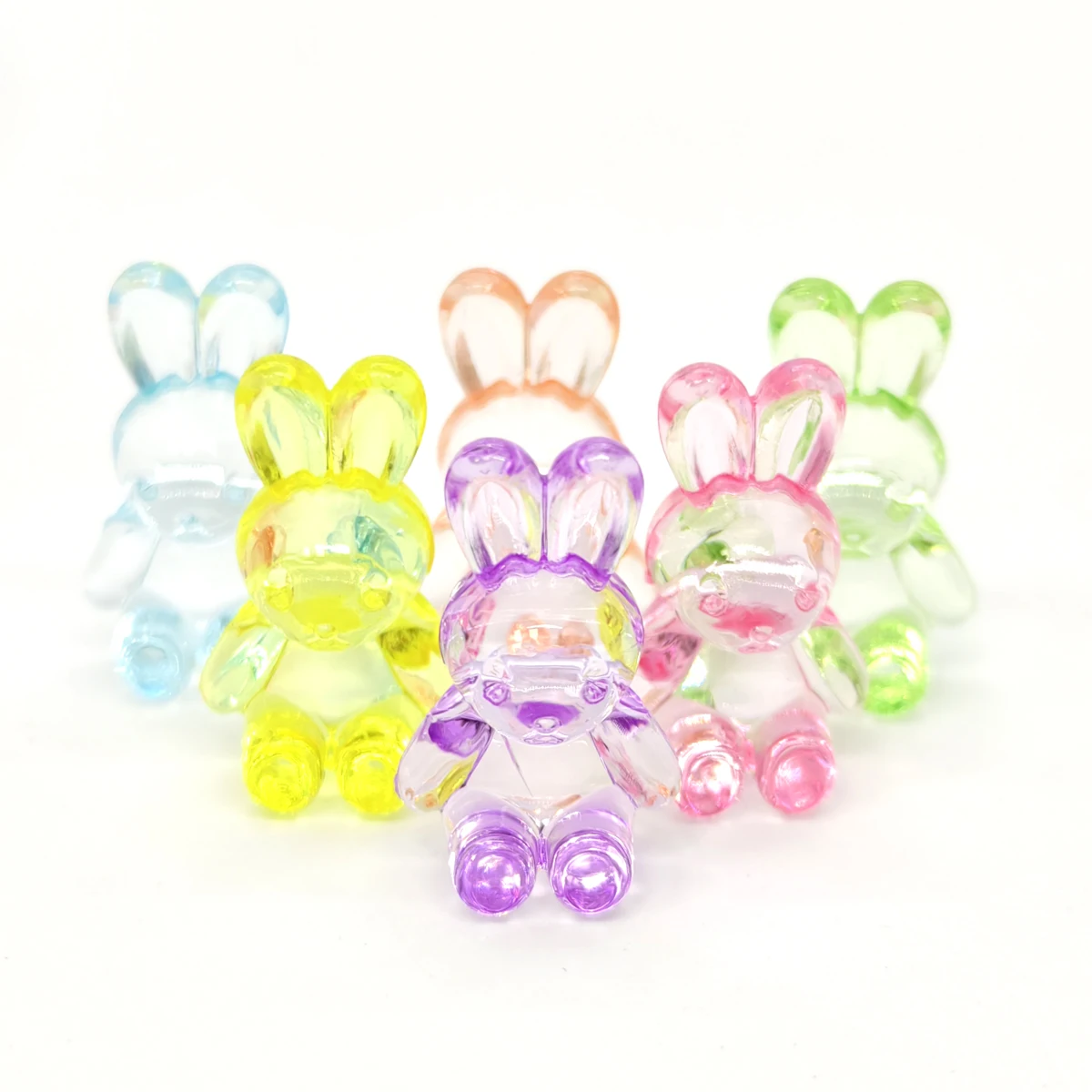 20p Acrylic clear frosted cartoon teddy bear rabbit horizontal hole loose bead DIY mobile phone chain pendant ornament gift