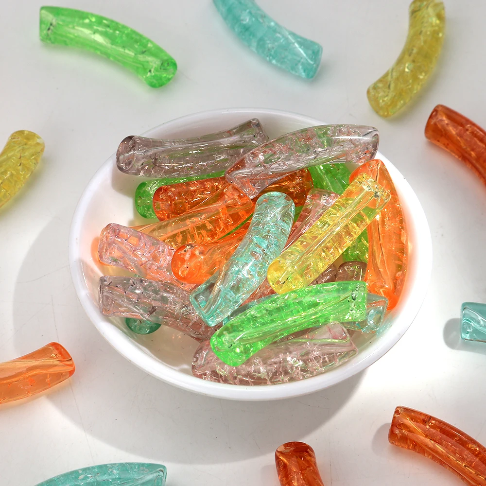 20pcs Thin Acrylic Cracked Bamboo Tube Beads 8mm Clear Bent Pipe Loose Bead for DIY Bracelet Necklace Jewelry Making Accessories