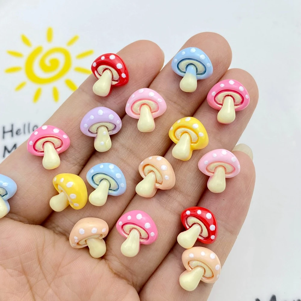 30Pcs New Cute Resin Small Mushroom Flat Back Ornament Jewelry Making Manicure Hairwear Accessorie