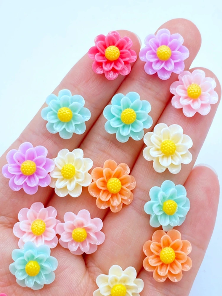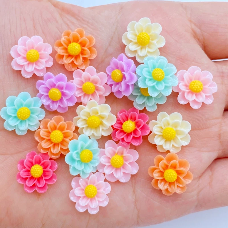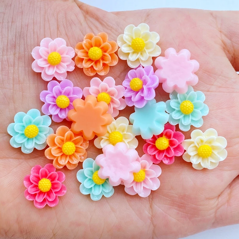 30pcs Resin Colorful 3D Mini Flower Flatback Stone Scrapbook Applique Figurines DIY Wedding Embellishment Manicure Craft