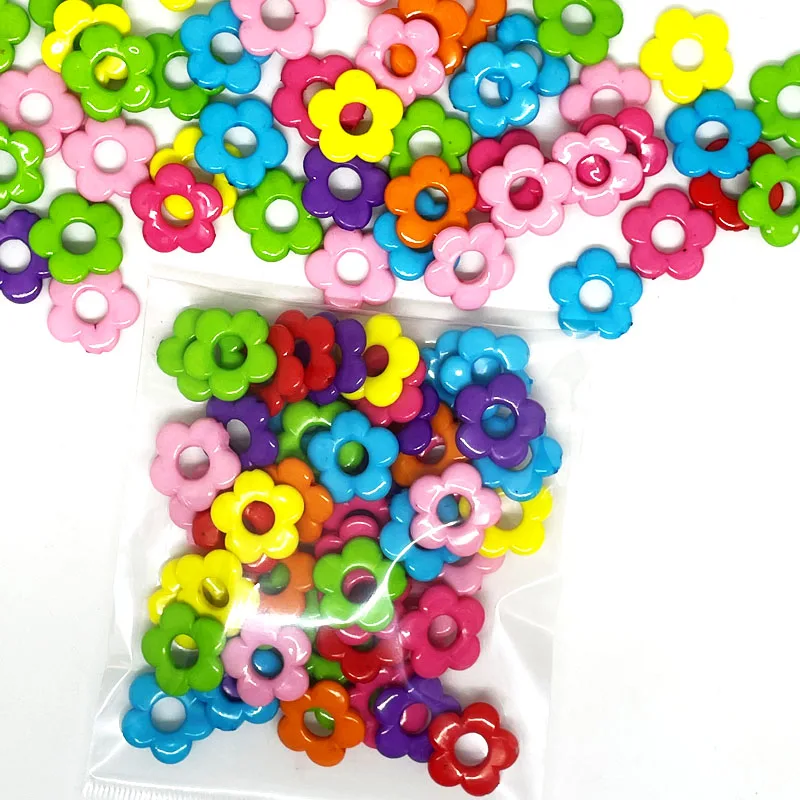30pcs Solid And Clear Color Hollow Out Five Petal Flower 20mm Straight Hole Acrylic Beads For Diy Handmade Materials Accessories