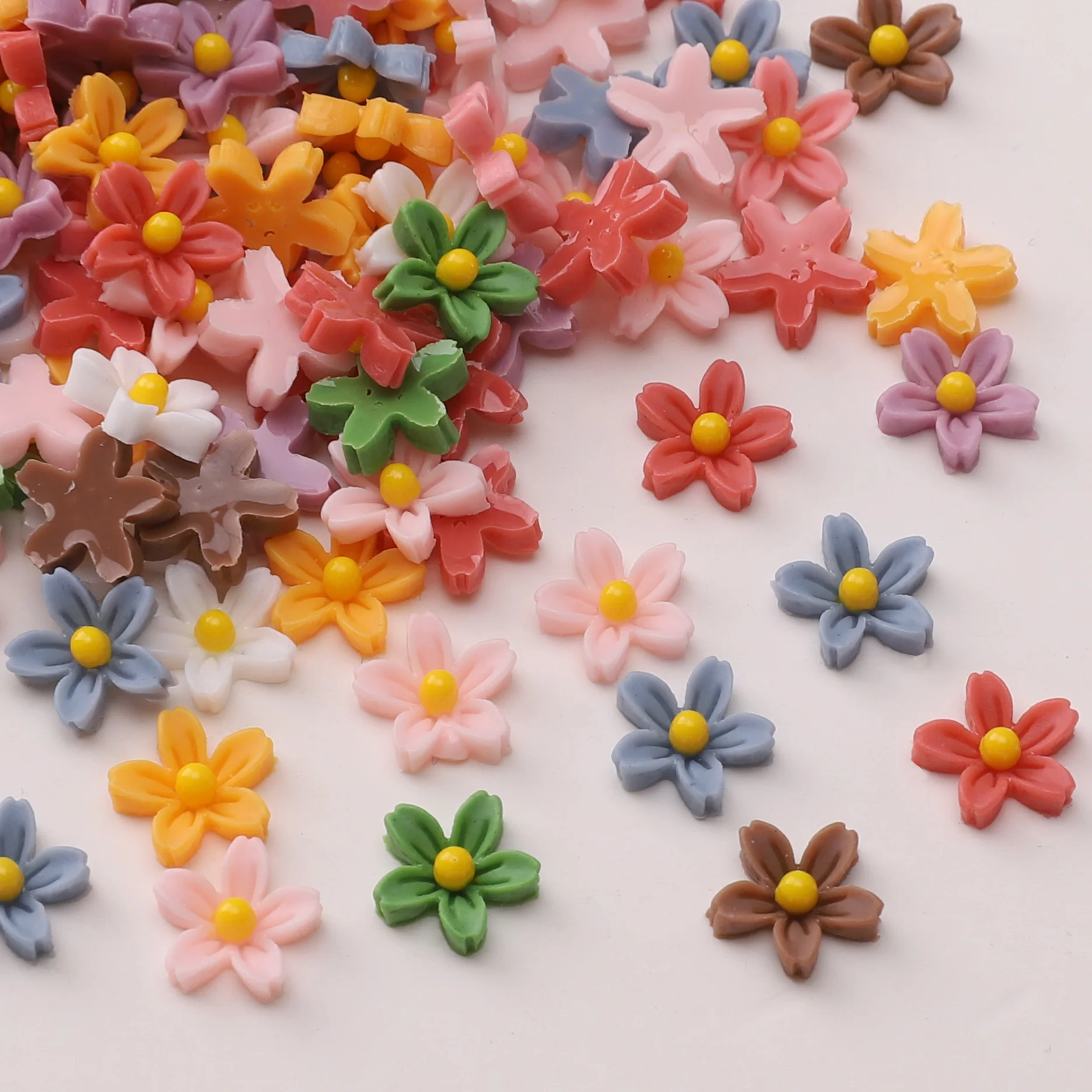 50Pcs 7mm Resin Beads DIY Mini Flower Charm Nail Art Rhinestones Floral Charms Jewelry Manicure Supplies Ornament Accessories