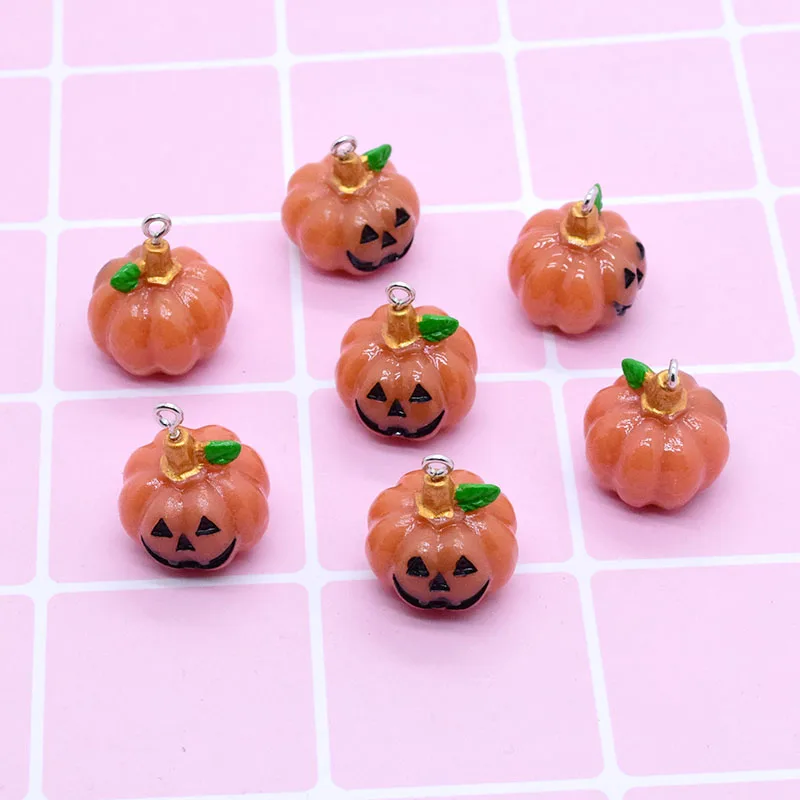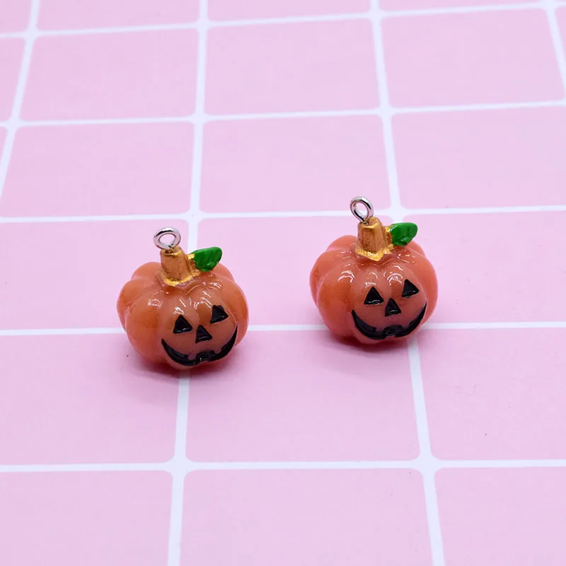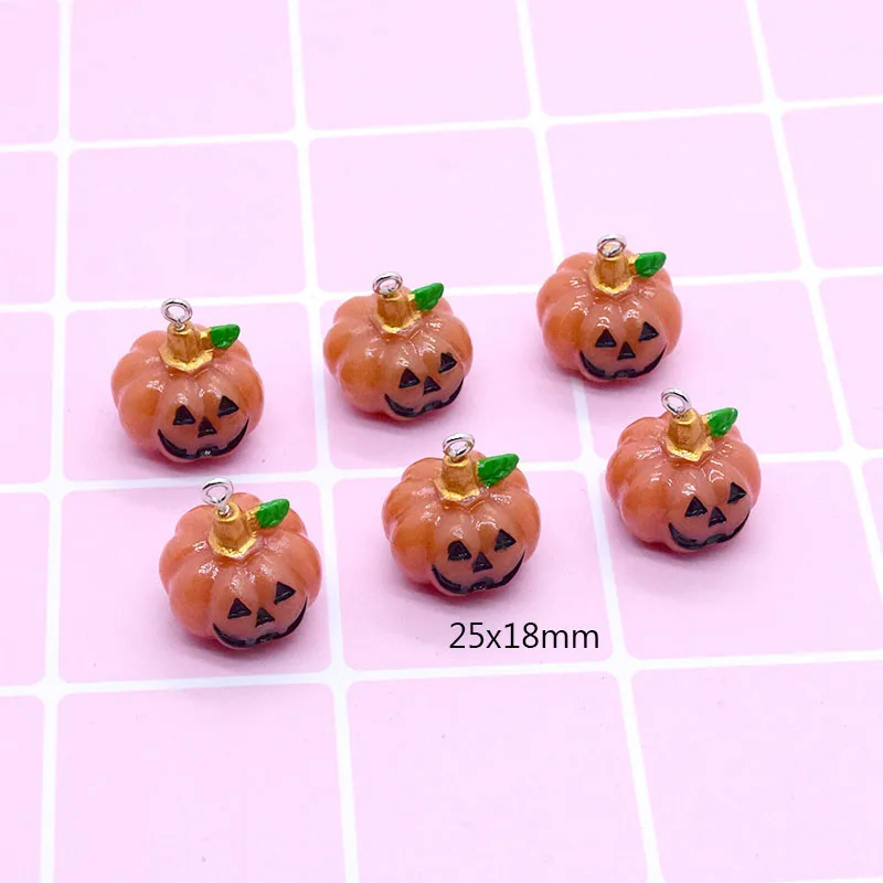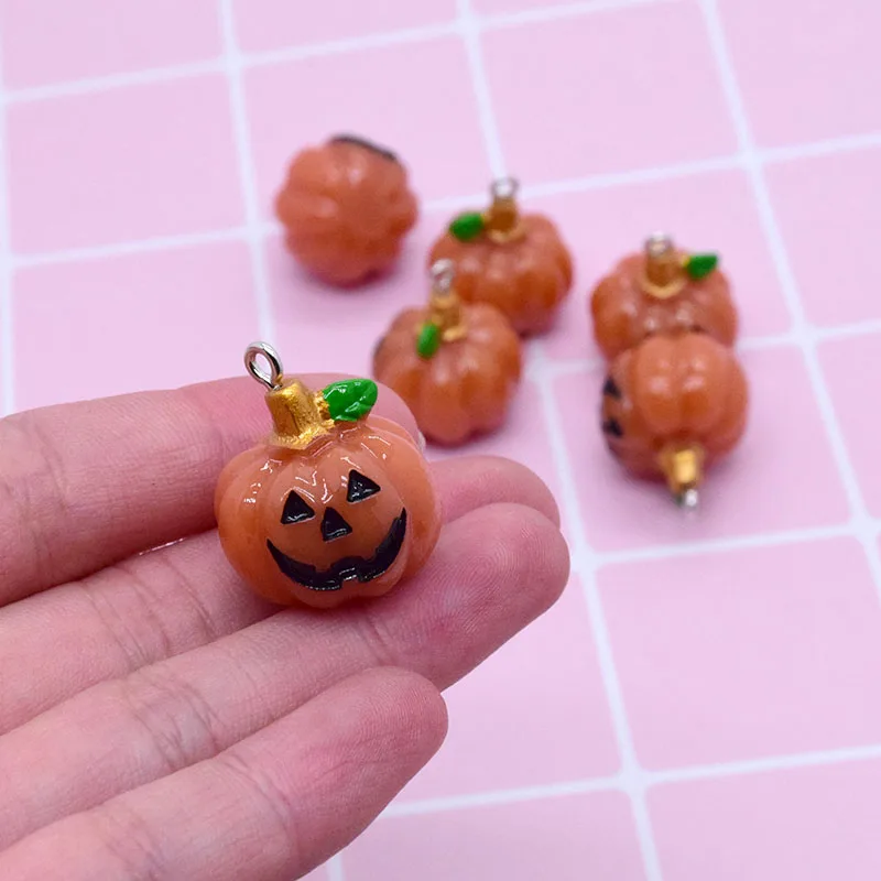 6pcs 3D Halloween Small Pumpkin Resin Charms Cute Halloweens Food Pendant For Earring Keychain Diy Crafts Jewelry Makee