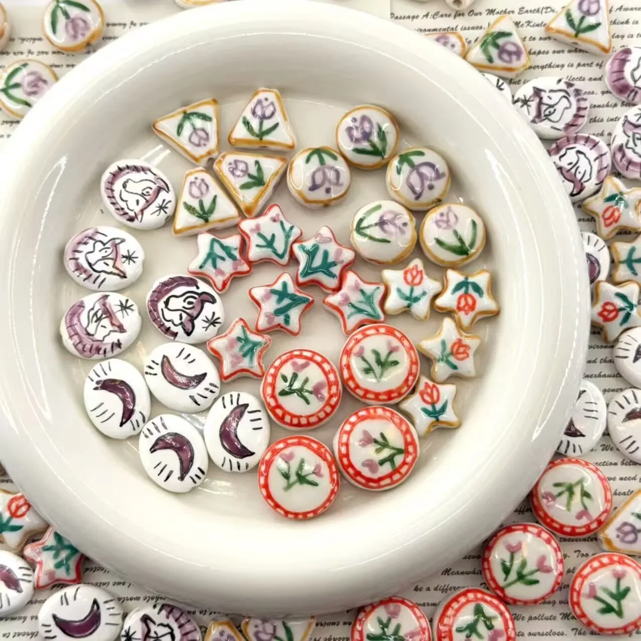 Ceramic Bead Hand-painted Flower Crescent Flower Series Diy Material Accessories