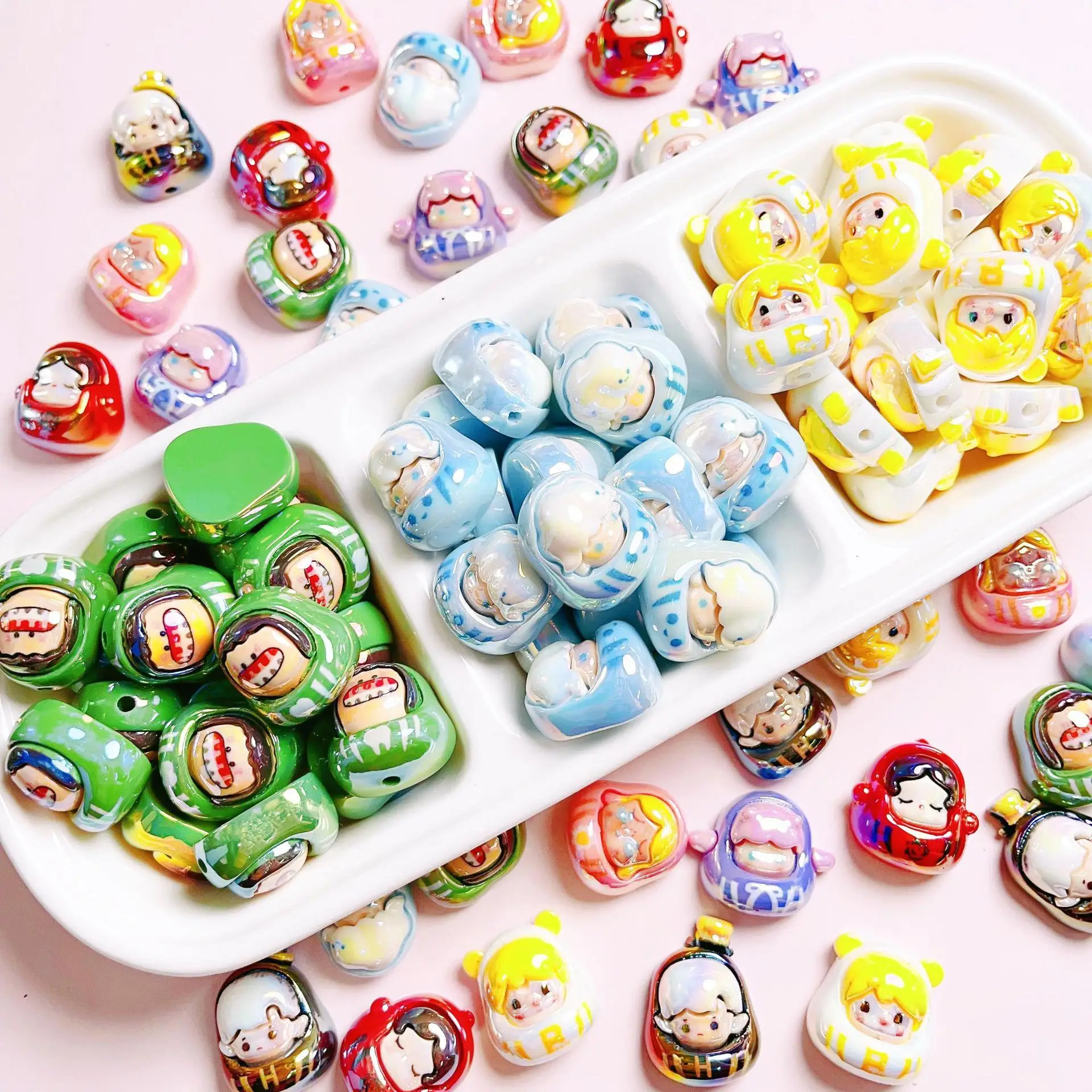Cute Cartoon 3d Damo Cute Grain Single Sided Straight Hole Beaded Diy Phone Chain Keychain Jewelry Accessories