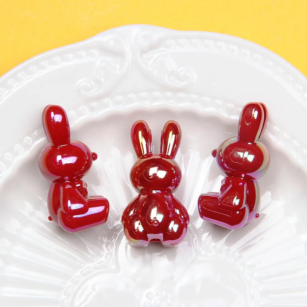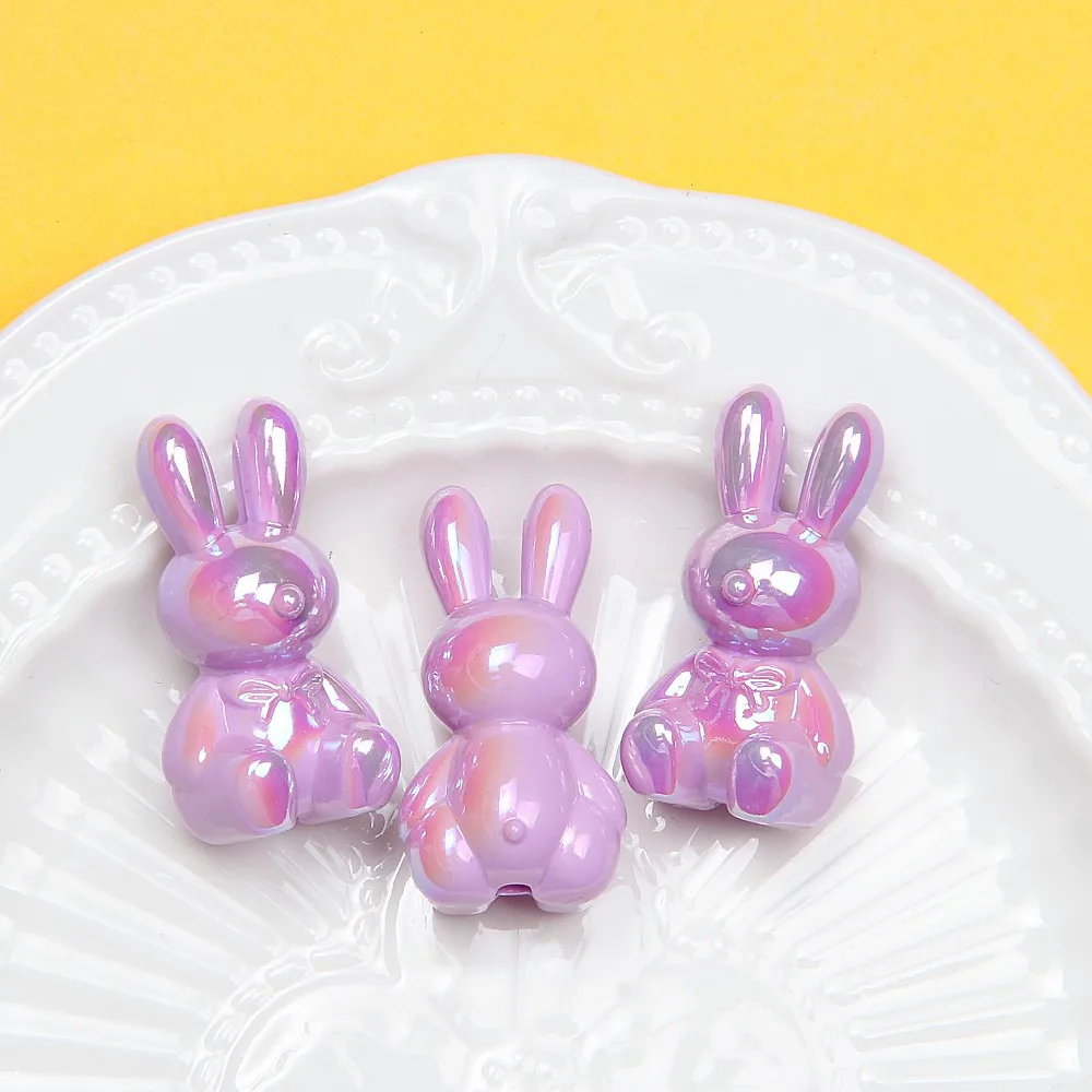 DW59 2pcs UV Color Acrylic Beads Cute Cartoon Rabbit Animal Shape Charm Vertical Hole DIY Pen Accessories Jewelry Material Gift