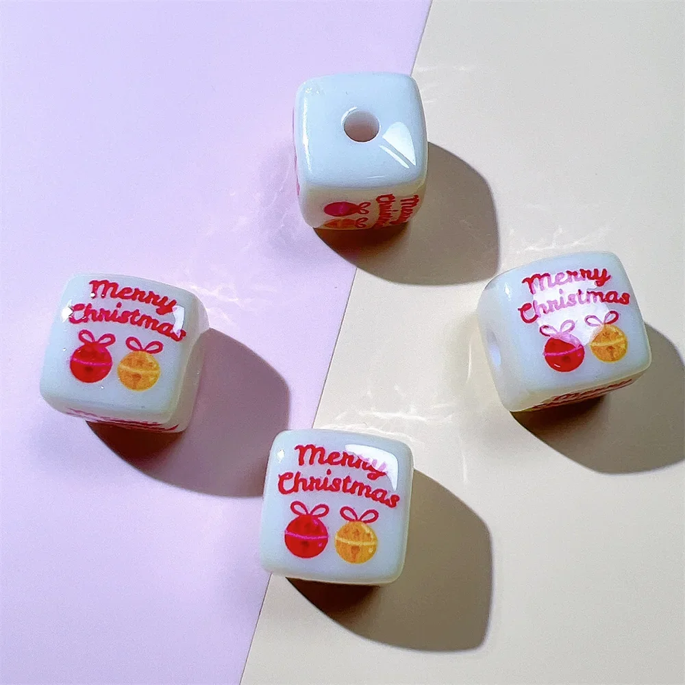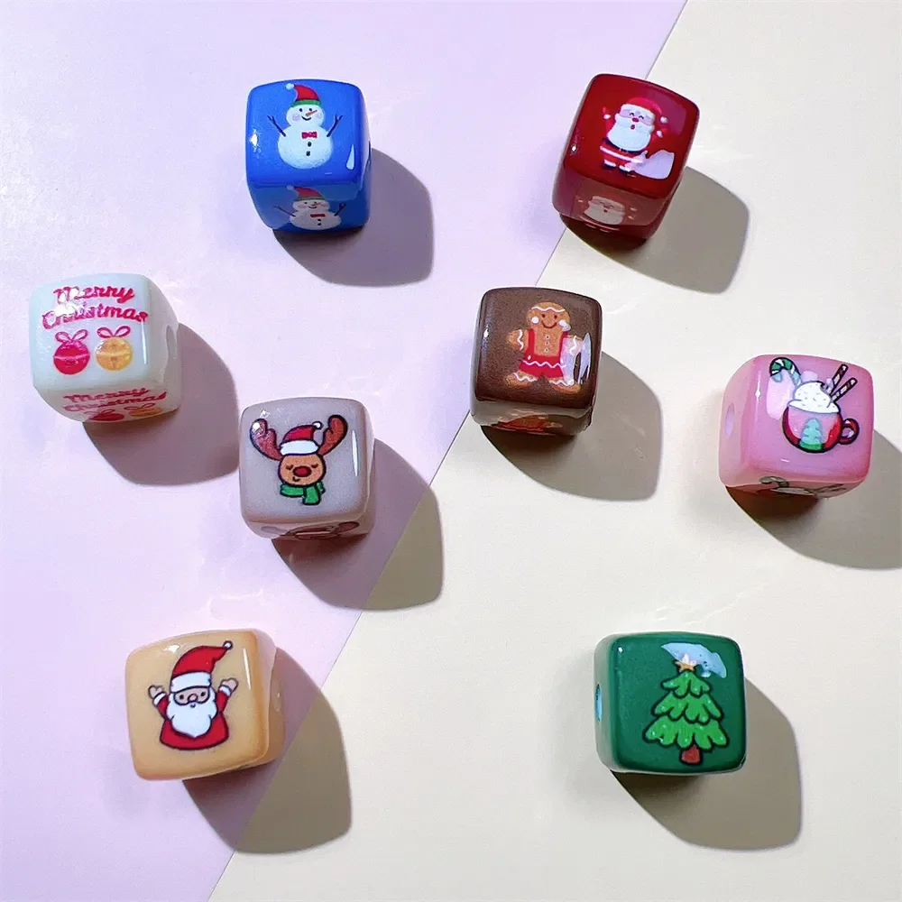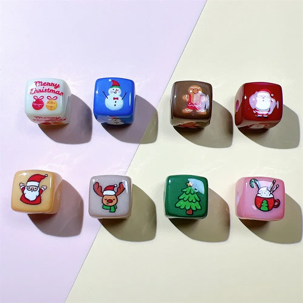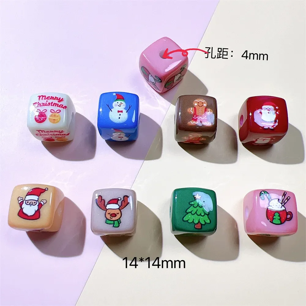 Q65 14mm Christmas Square Cartoon Middle Bead Hand Strings Ropes Bracelet Loose Beads Accessories Girl DIY Jewelry Material