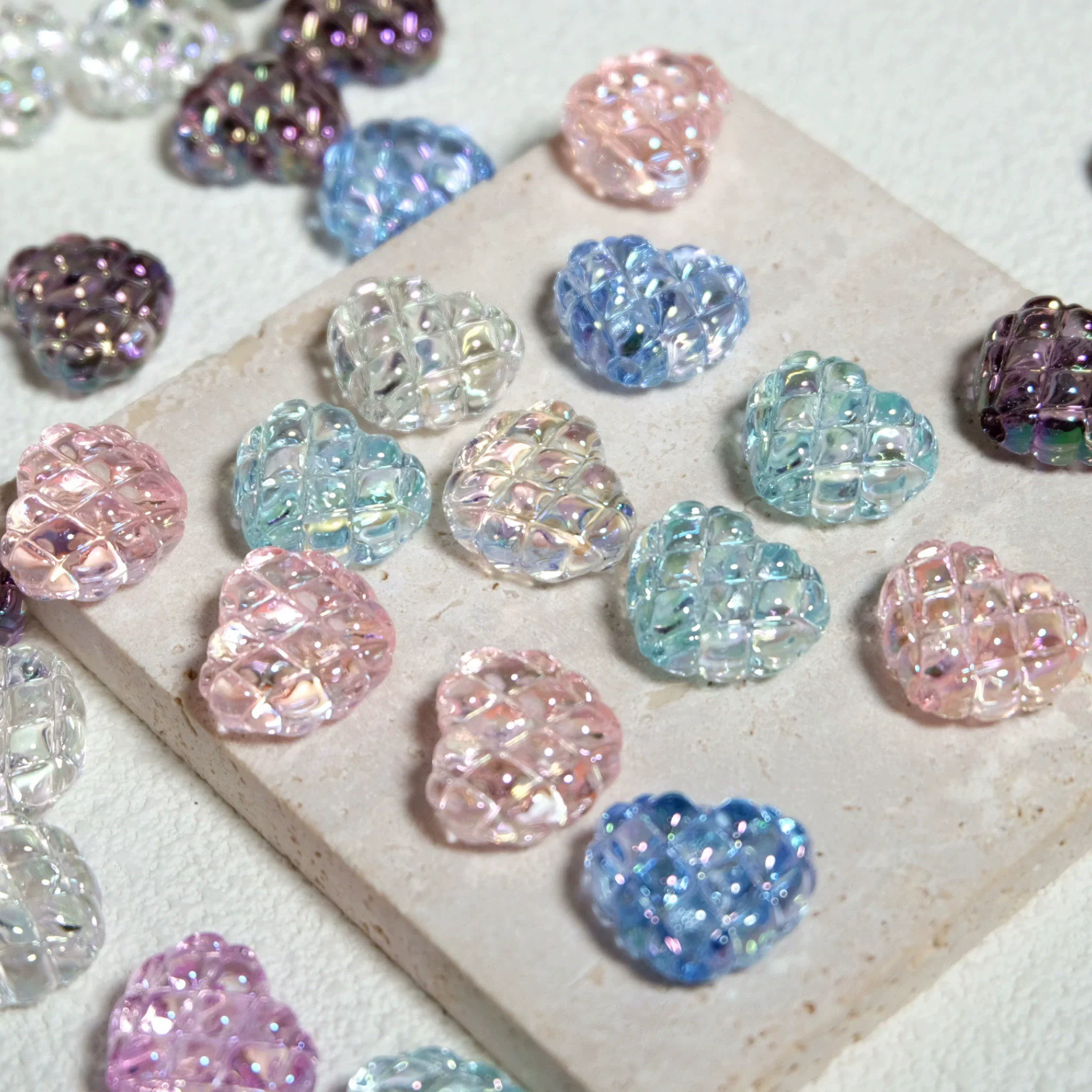 The materials of beads are rich and diverse, including glass beads, crystal beads, wood beads, plastic beads, ceramic beads, etc. Each bead has its own unique texture and appearance.